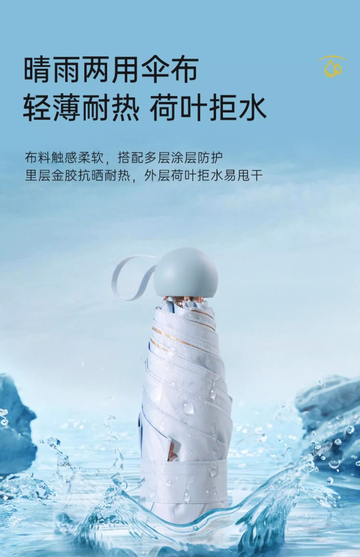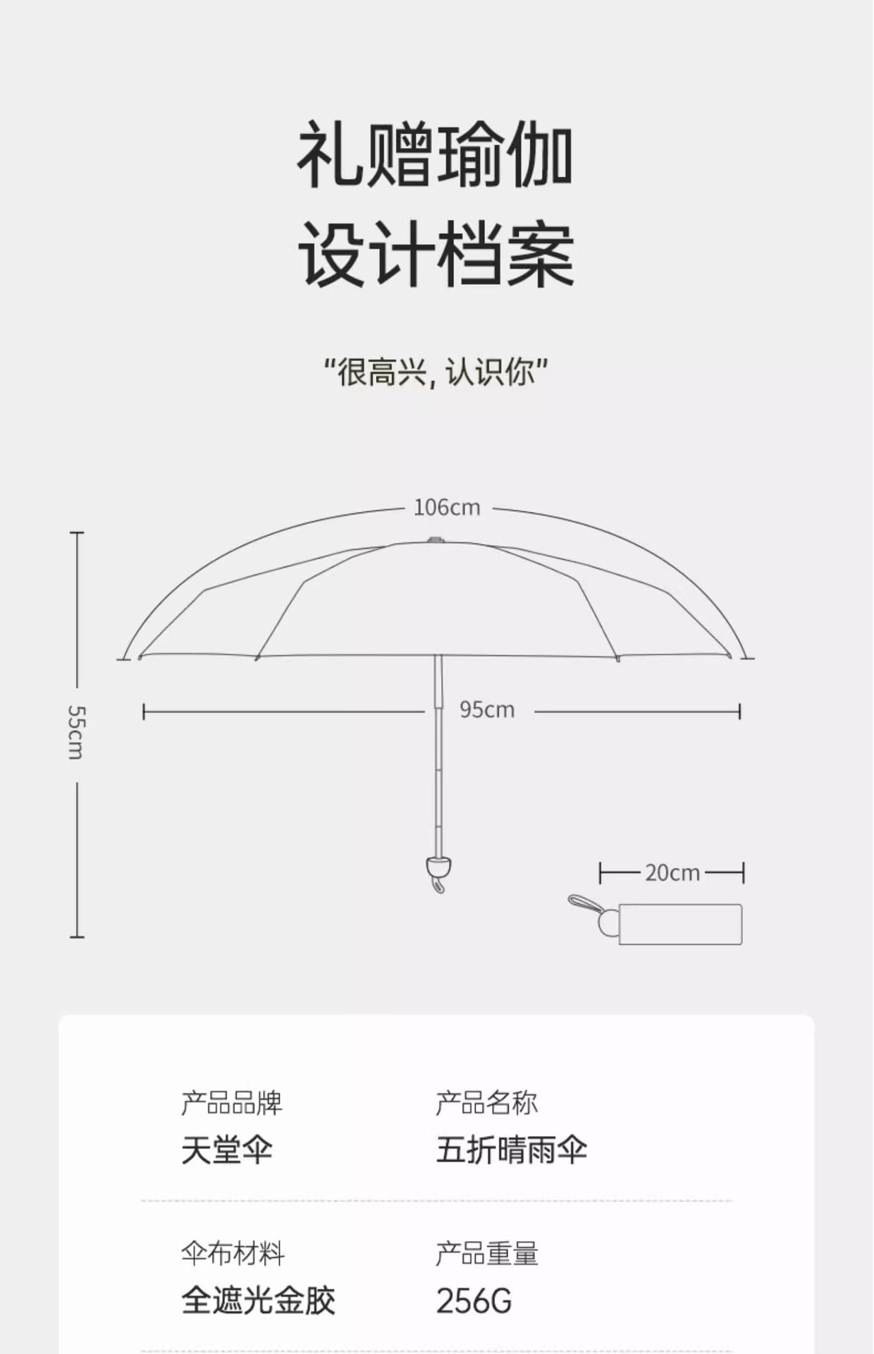 商品名称:天堂伞金胶防晒太阳伞超轻口袋胶囊小伞女晴雨两用57503E瑜伽五折晴雨伞