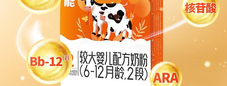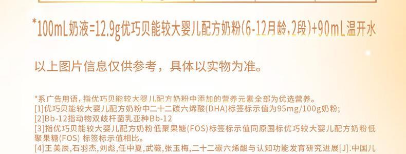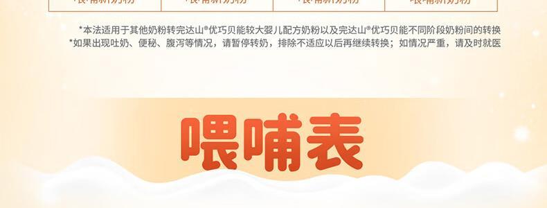 商品名称:完达山(wondersun)优巧贝能婴幼儿配方奶粉 2段 400g 适合6-12个月*新国标*不支持异地扫描积分