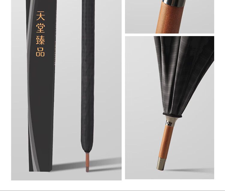 商品名称:天堂 双人晴雨伞长柄 加固加大半自动直柄伞木柄双人伞17503E纵横直杆伞