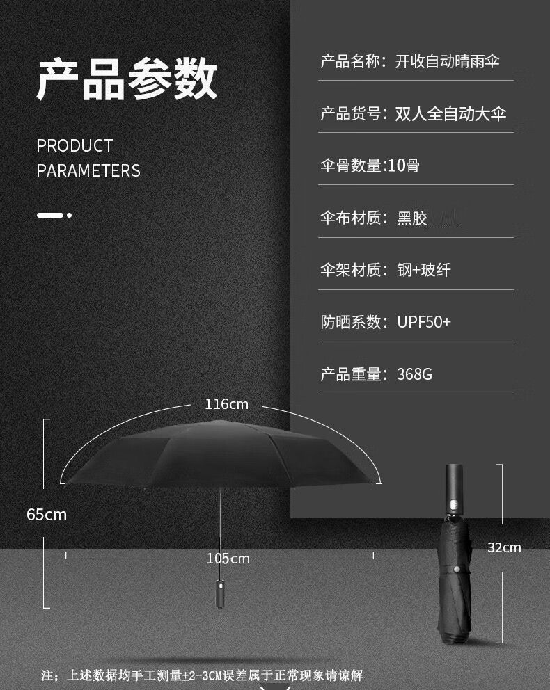 商品名称:天堂伞全自动10骨商务伞晴雨伞三折叠抗风黑胶遮阳伞双人超大伞38017E三折黑胶自动伞