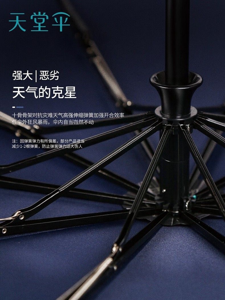 商品名称:天堂伞全自动雨伞10骨男女大号双人三折叠开收加固防风学生晴雨伞两用38057E三折自开收晴雨伞