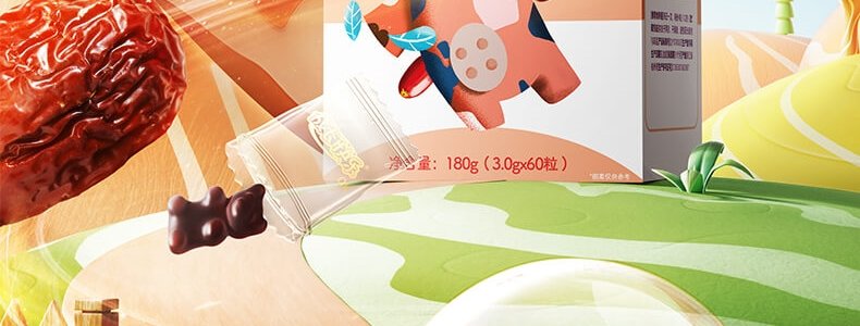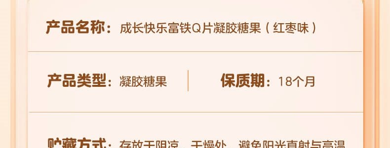 商品名称:养生堂成长快乐红枣味富铁Q片凝胶糖果 60粒