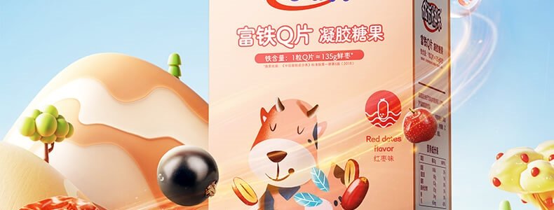 养生堂成长快乐红枣味富铁Q片凝胶糖果 60粒