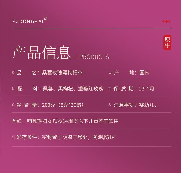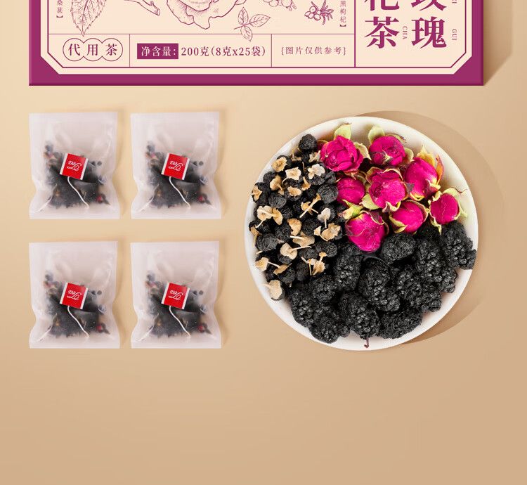 商品名称:【福东海】桑葚玫瑰黑枸杞茶200克(8克x25包)/盒