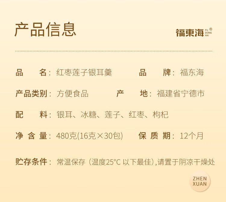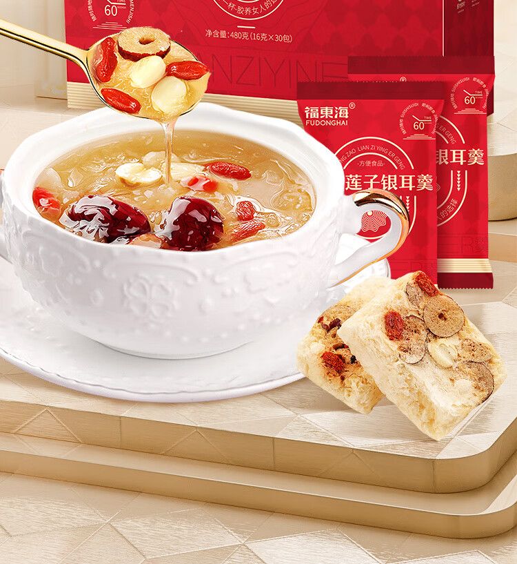 商品名称:【福东海】红枣莲子银耳羹480克(16克x30袋)/盒
