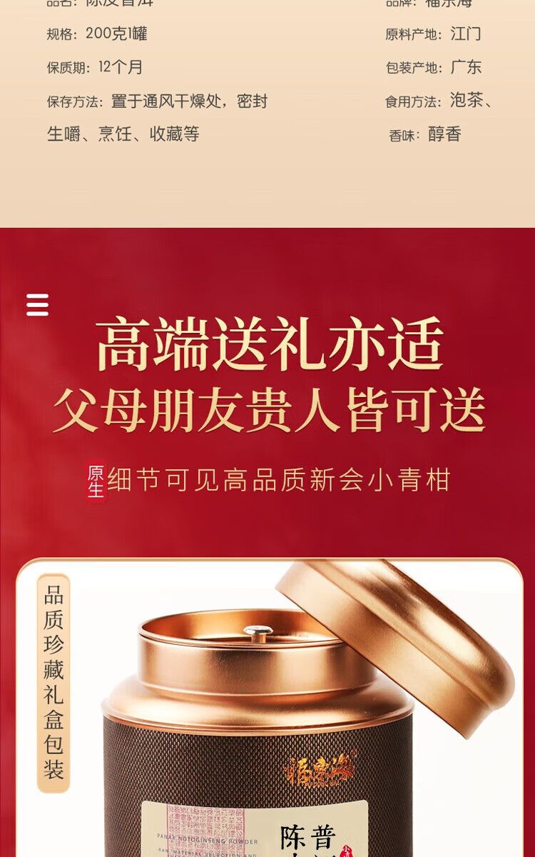 商品名称:【福东海】陈皮普洱茶(小青柑)200克/罐