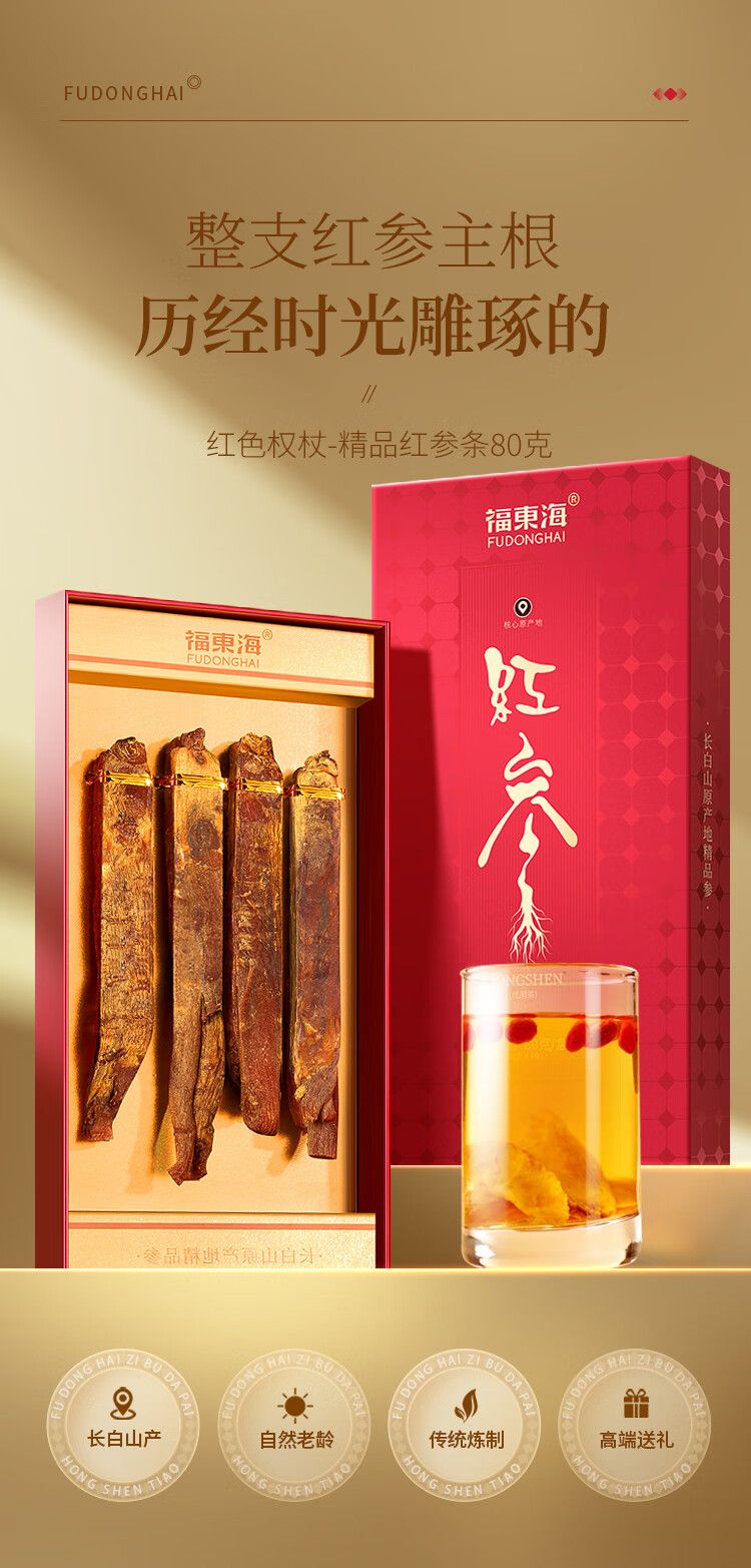 商品名称:【福东海】红参80克(20克x4支)/盒