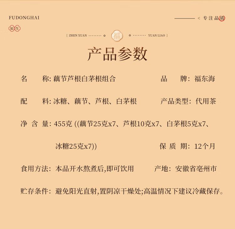 商品名称:【福东海】藕节芦根白茅根组合455克/盒