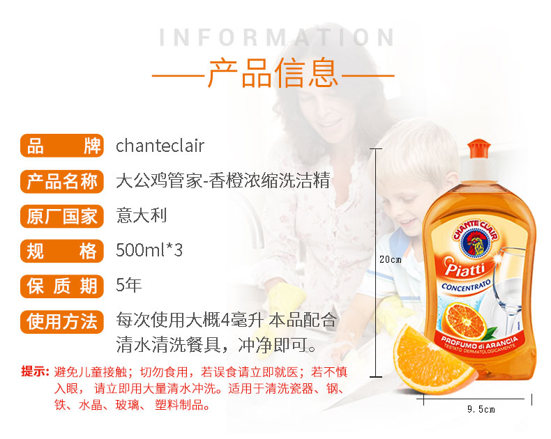商品名称:大公鸡管家浓缩洗洁精(香橙) 500m