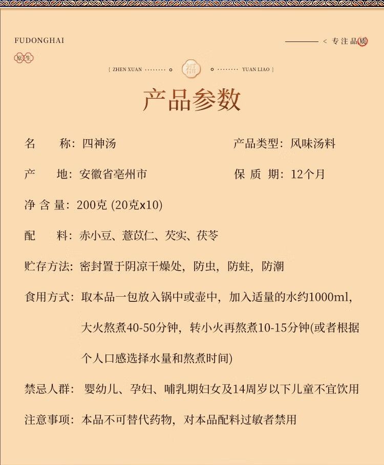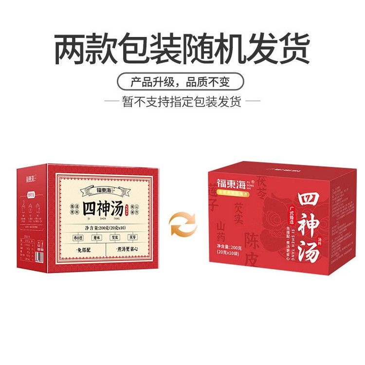 商品名称:【福东海】四神汤200克(20克x10袋)/盒-新款(莲子、陈皮、山药、芡实、茯苓)