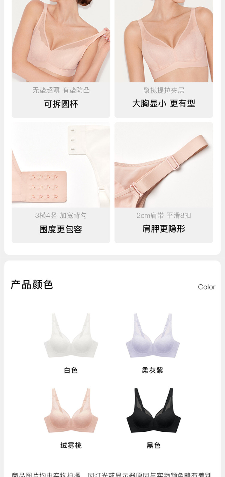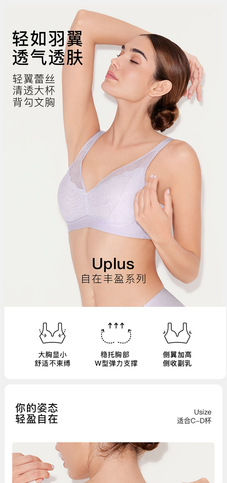 商品名称:【大胸显小】轻翼蕾丝清透大杯背勾文胸收副乳防下垂防外扩内衣女 140864