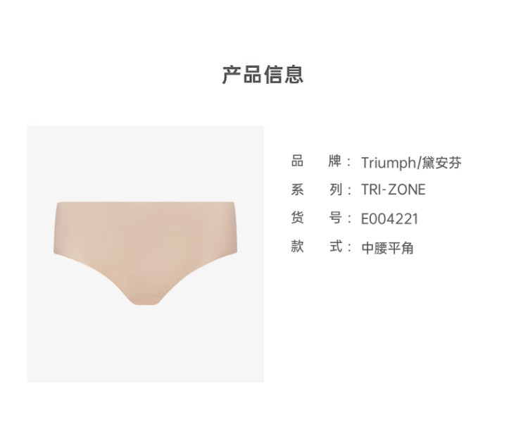 商品名称:Triumph/黛安芬光面无痕内裤女舒适透气无缝中腰平角裤 882634