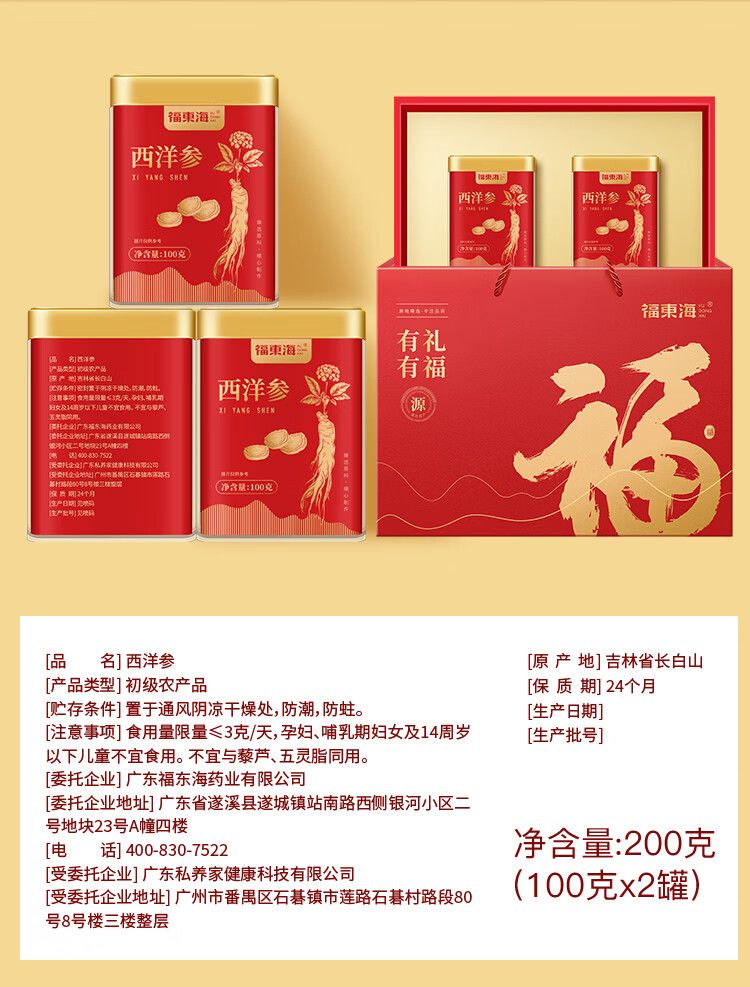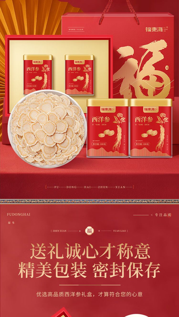 商品名称:【福东海】西洋参片200克(100克x2瓶)礼盒(0.6-0.8cm)
