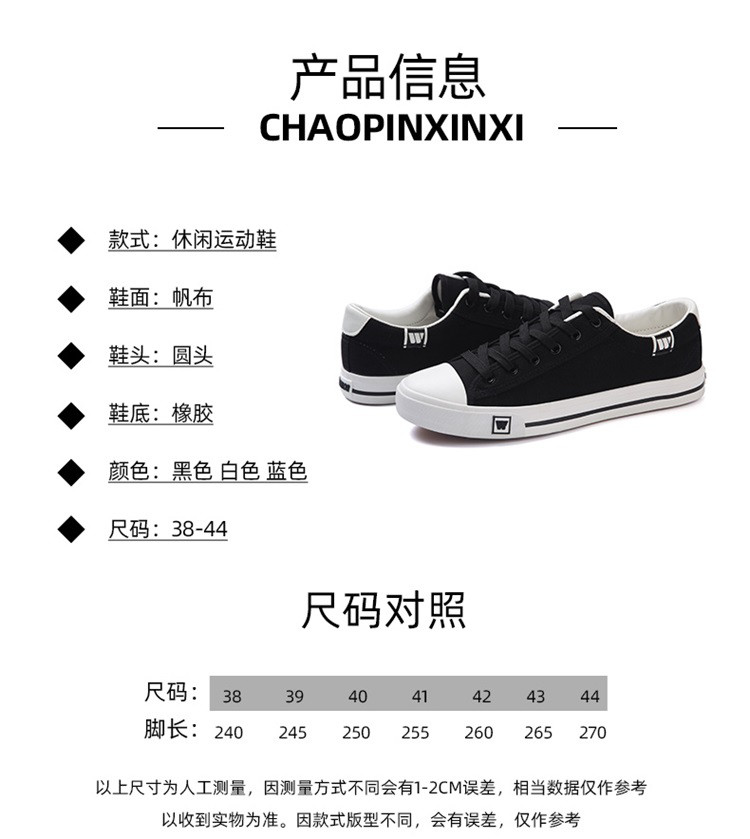 商品名称:春季款时尚简约板鞋经典百搭帆布鞋轻便舒适小白鞋女鞋男鞋 217413
