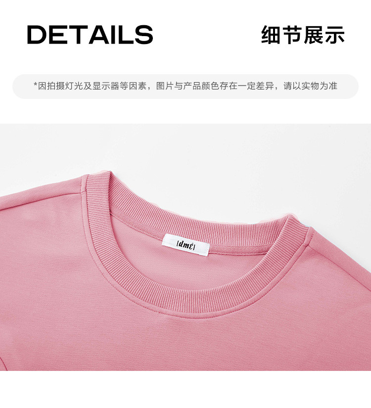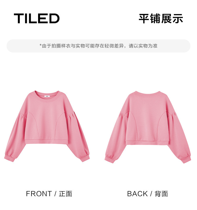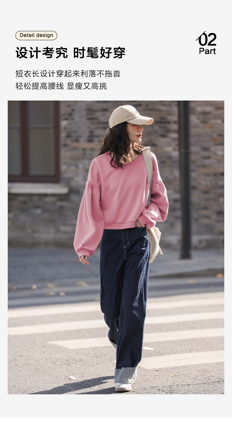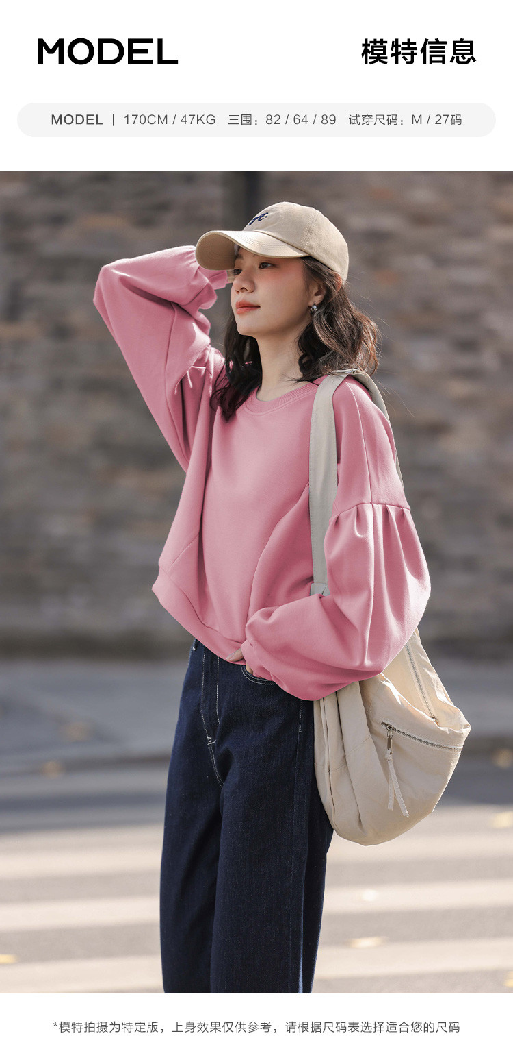 商品名称:【玫粉短款泡泡袖】秋圆领落肩泡泡袖加大身分割设计卫衣 266754