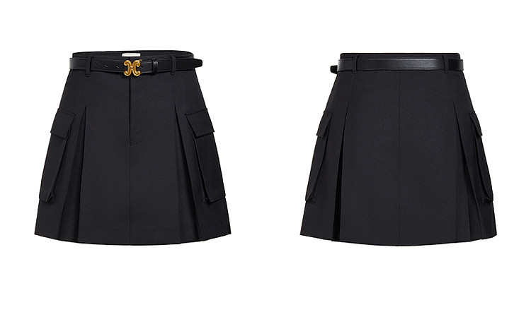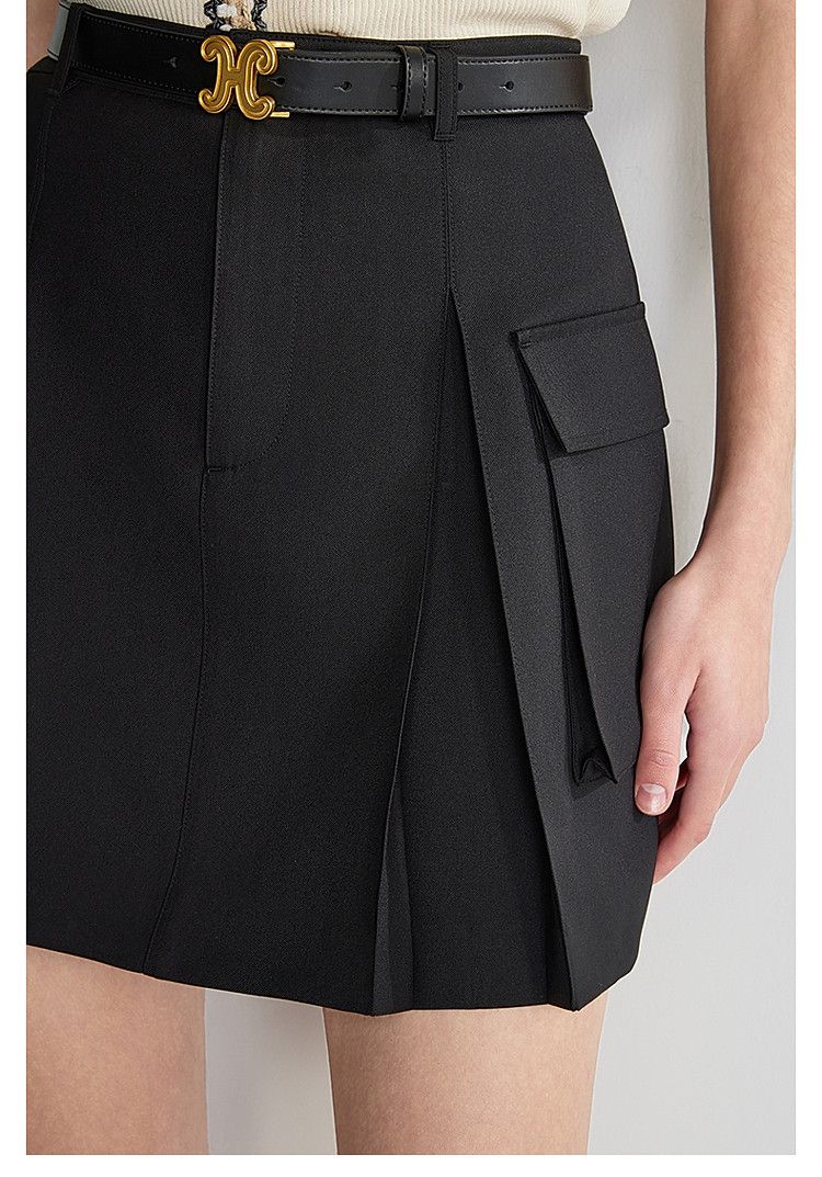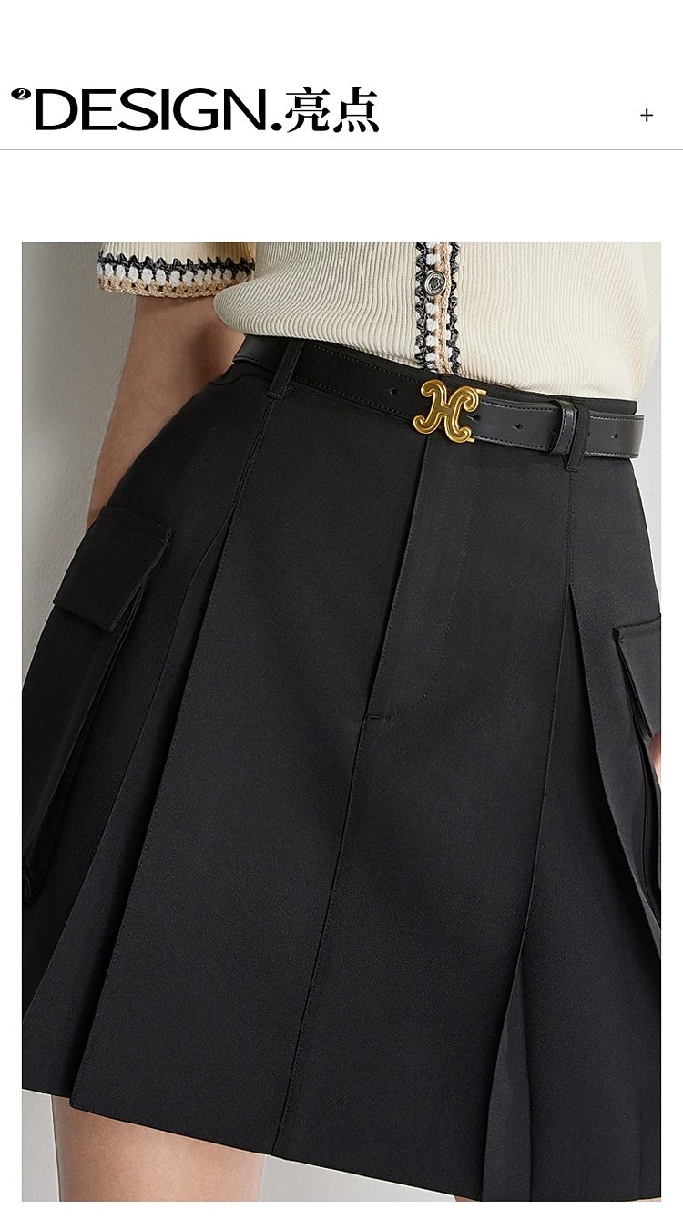 商品名称:夏装 工装风a字半身裙女短裙压褶配腰带 670031