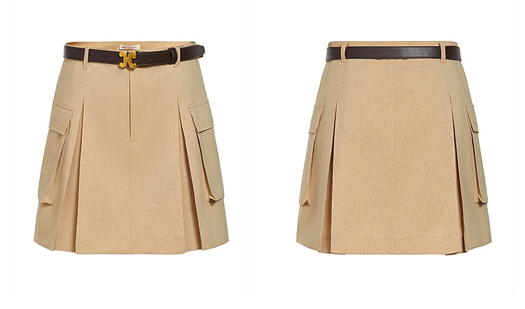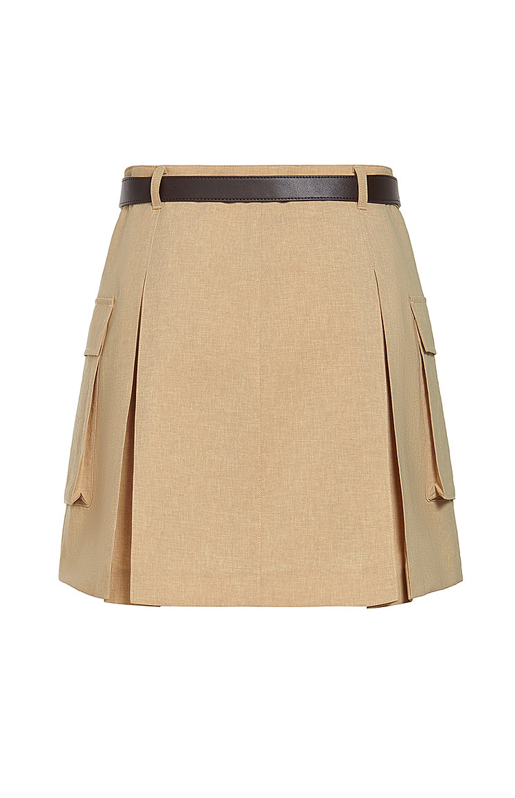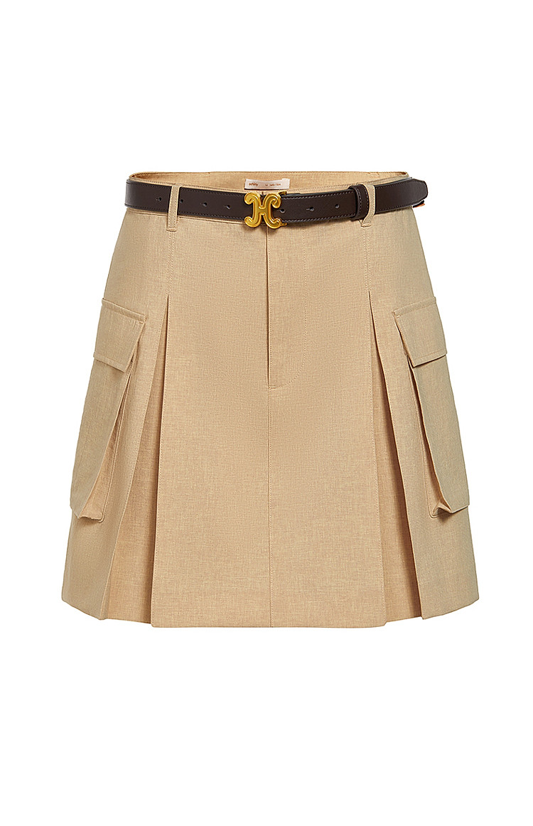 夏装 工装风a字半身裙女短裙压褶配腰带 670031