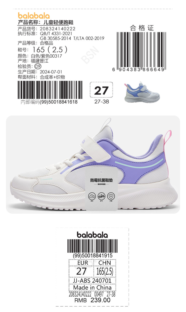 尺码 欧洲码 脚长(mm) 鞋内长(mm)