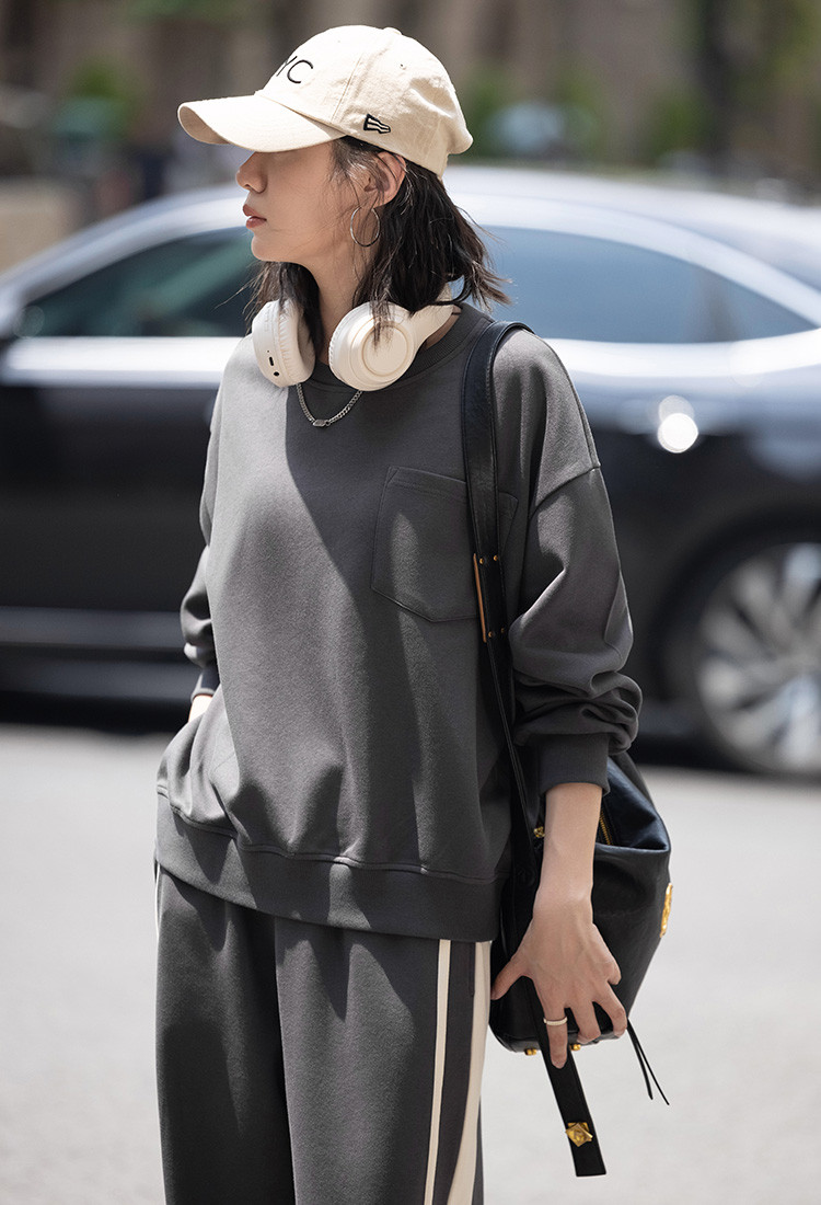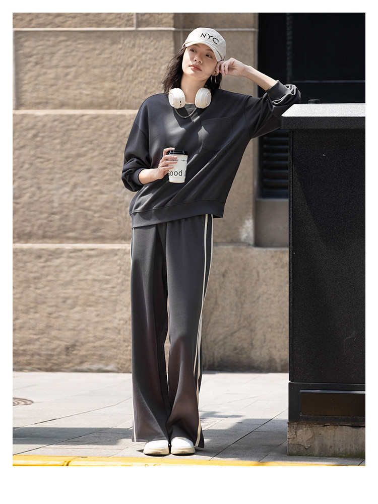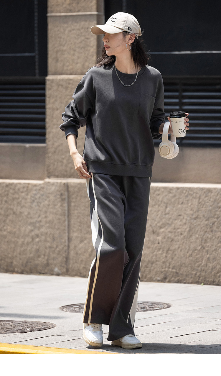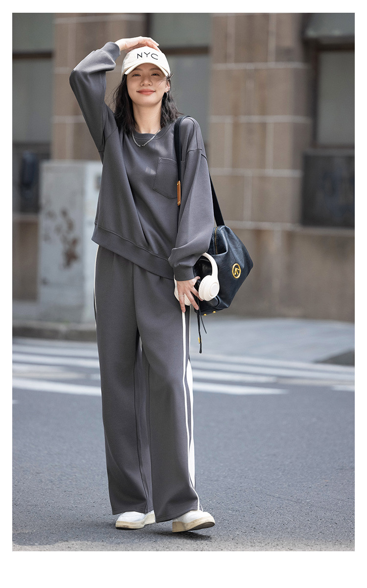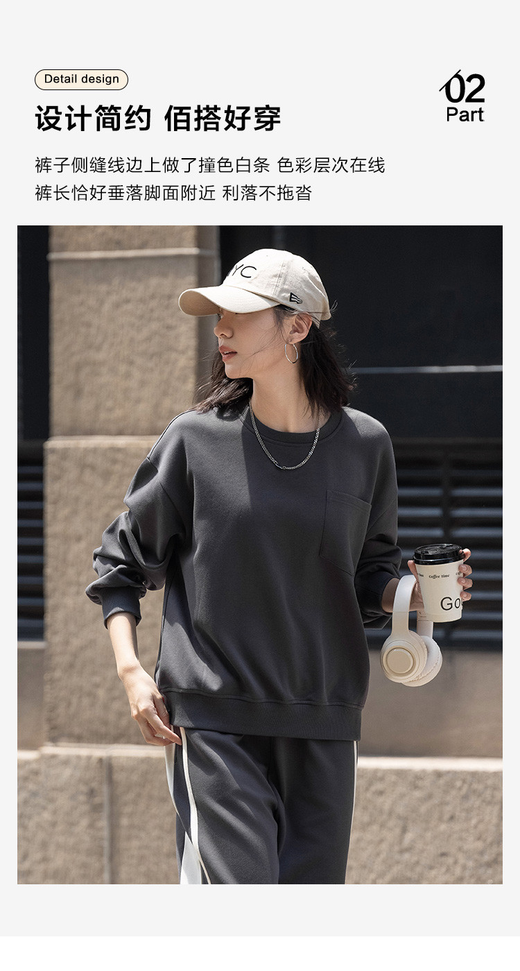 商品名称:【砖灰色休闲套装】春秋圆领贴袋卫衣+简约休闲裤女 494530