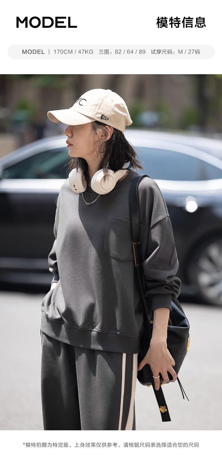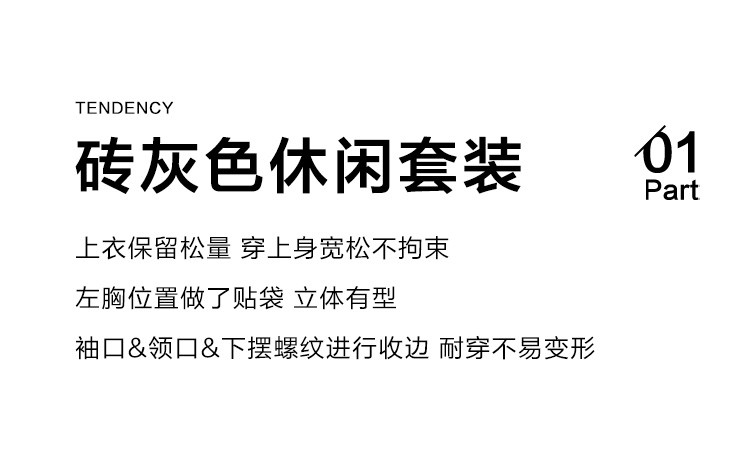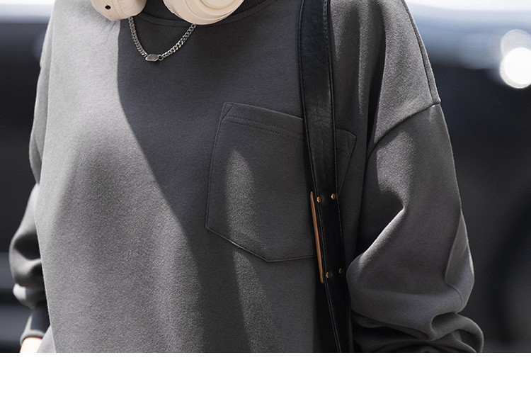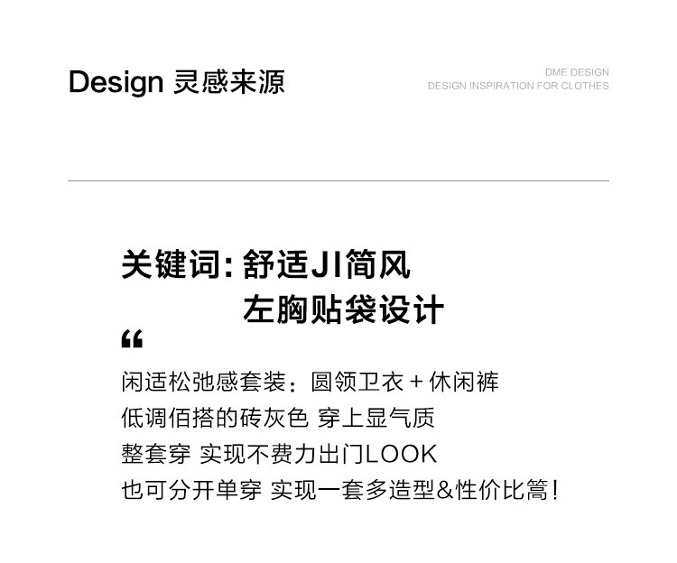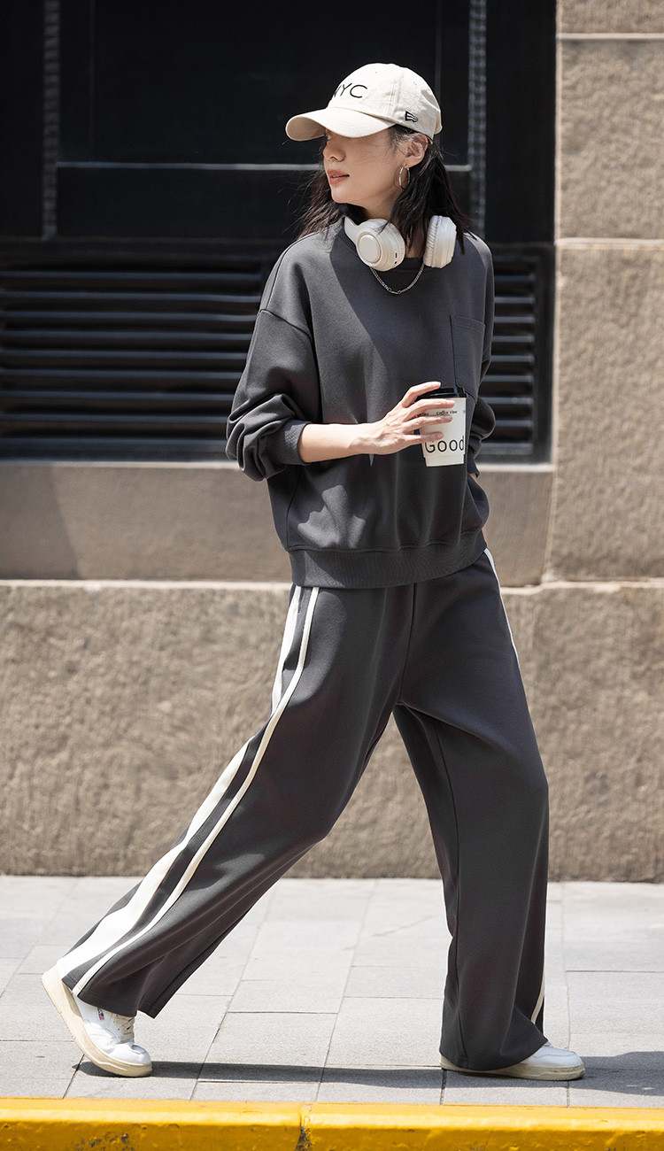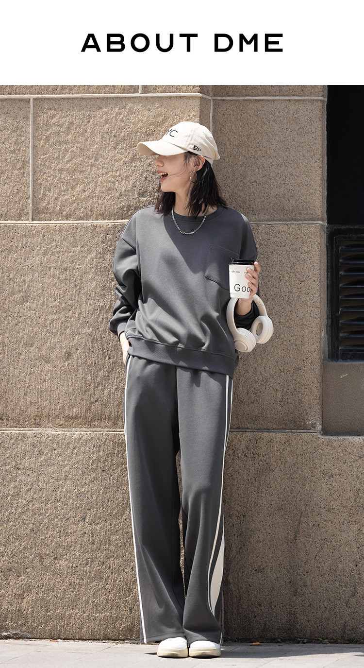 商品名称:【砖灰色休闲套装】春秋圆领贴袋卫衣+简约休闲裤女 494530