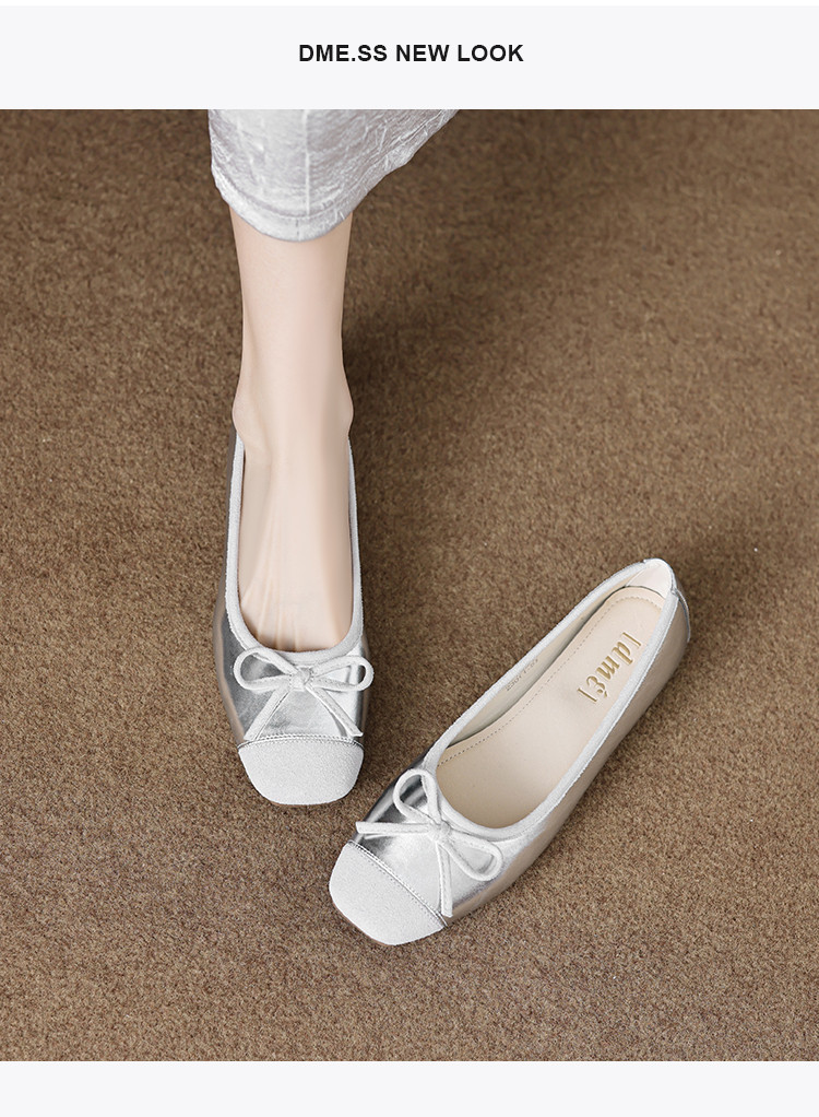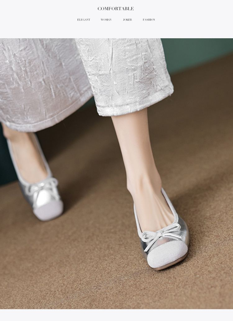 2024年秋季气质简约高级感韩系绒面拼接蝴蝶结芭蕾鞋女单鞋 925761