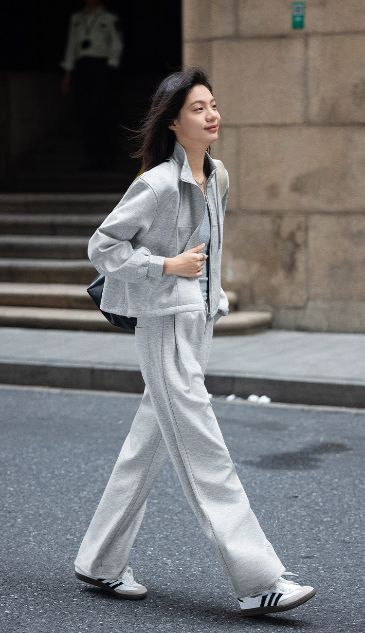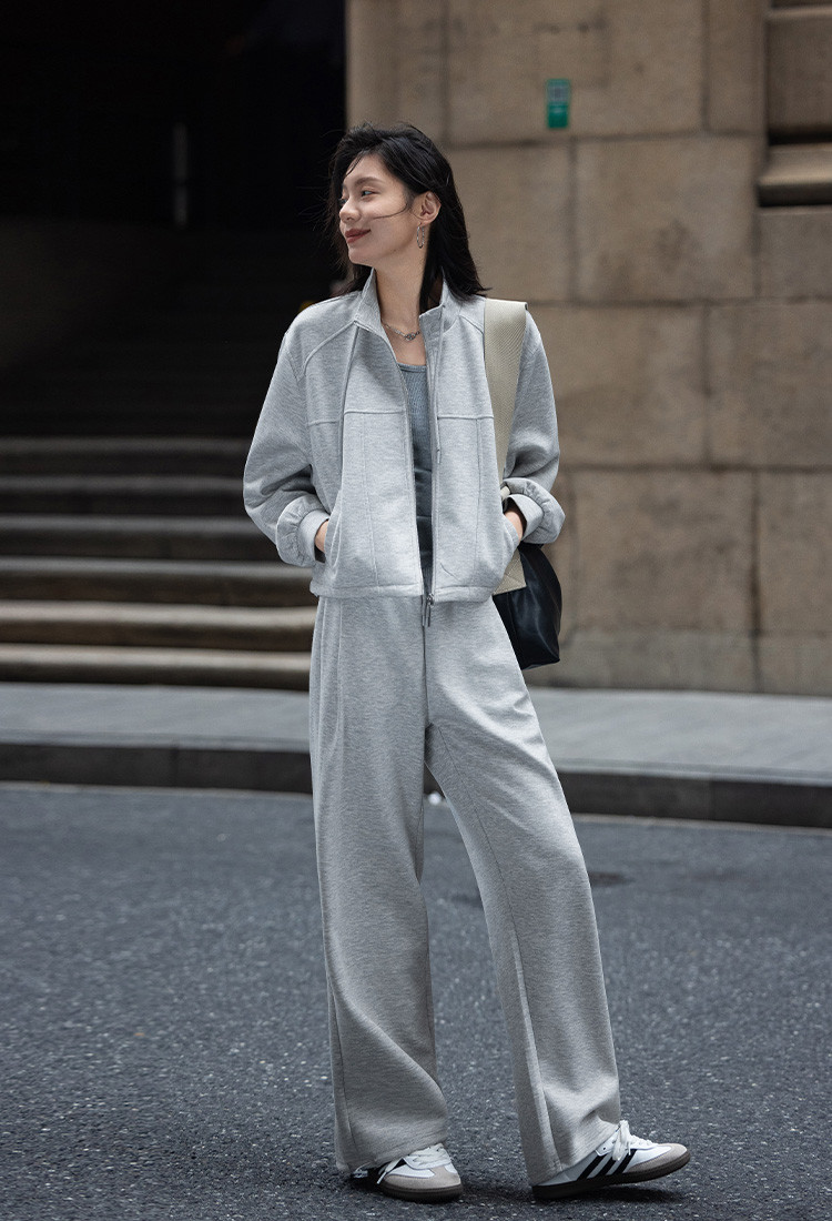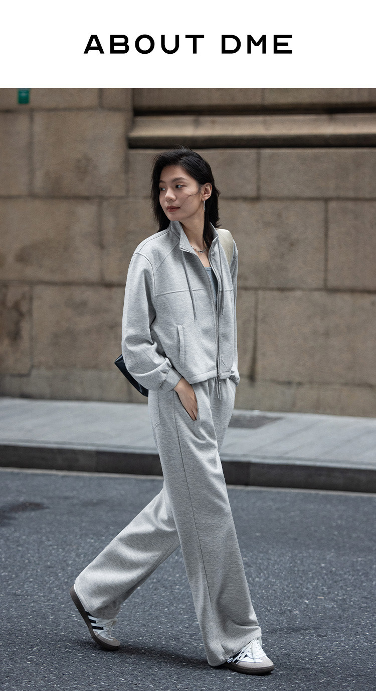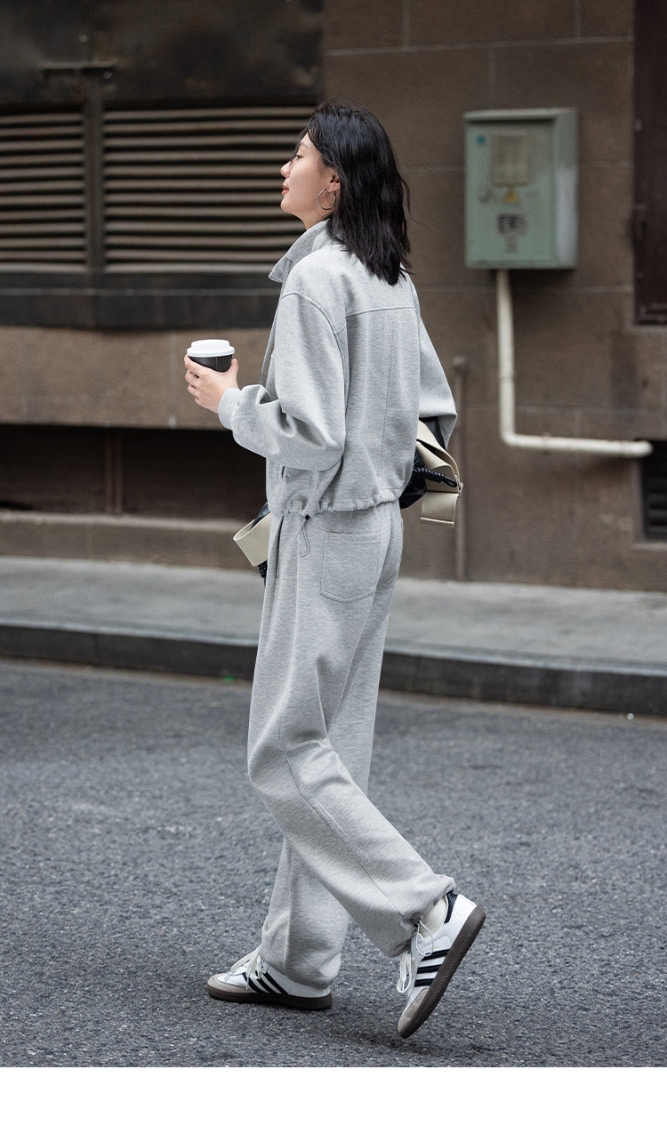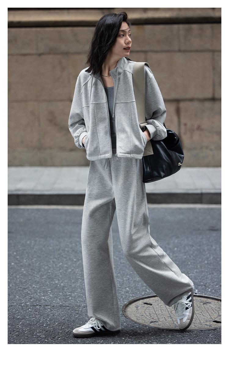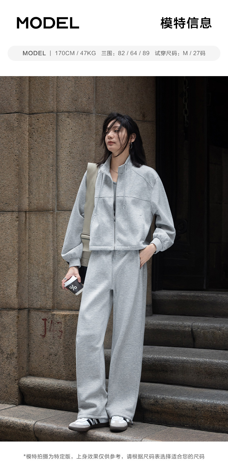 【浅麻灰休闲套装】春秋休闲松弛感帅气立领短外套+直筒裤 457666