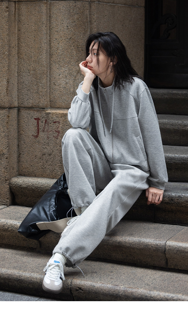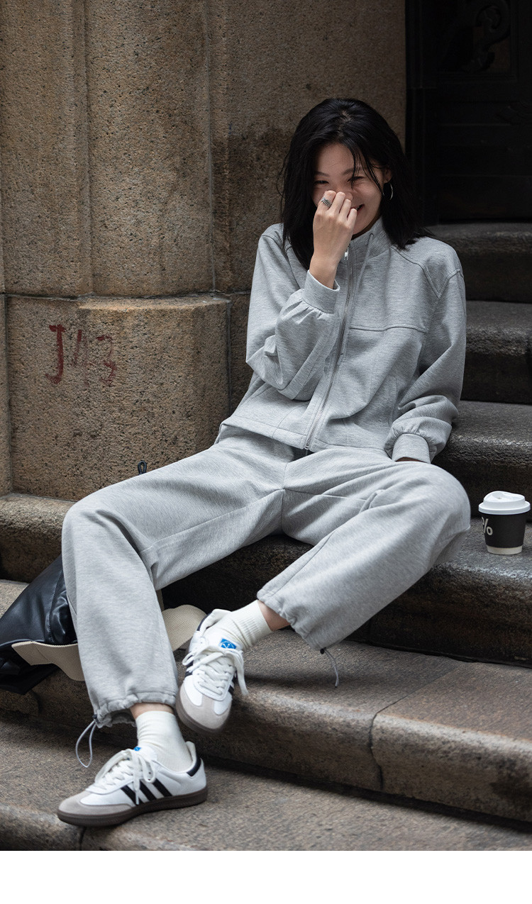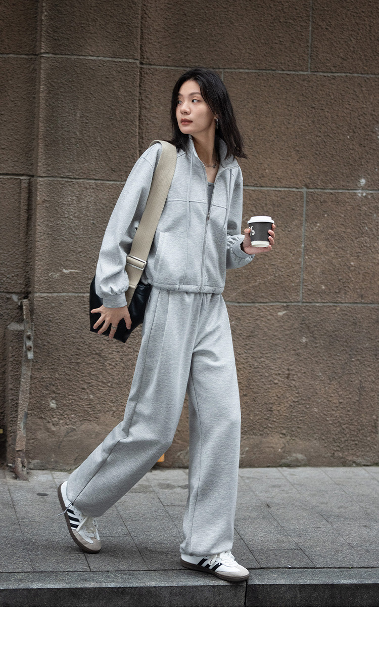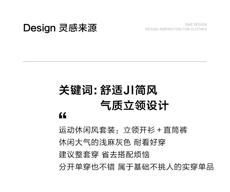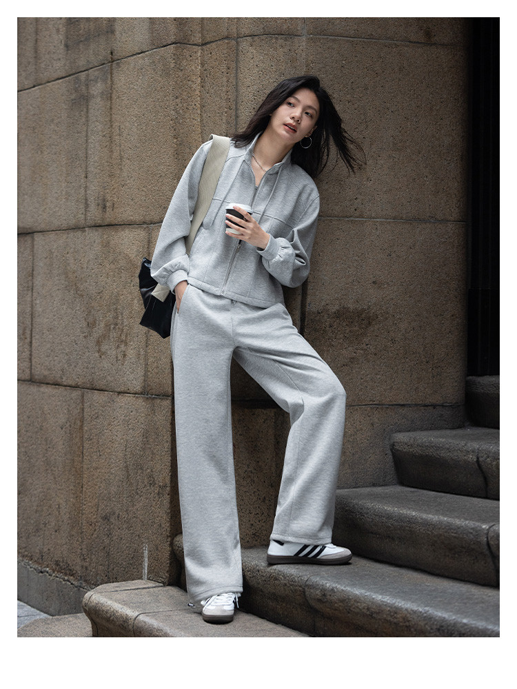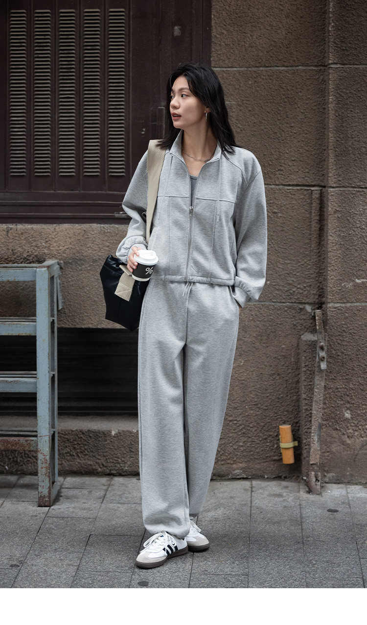 【浅麻灰休闲套装】春秋休闲松弛感帅气立领短外套+直筒裤 457666