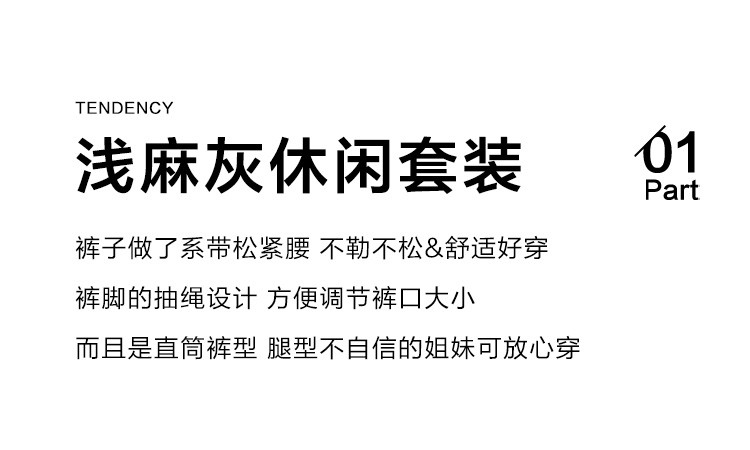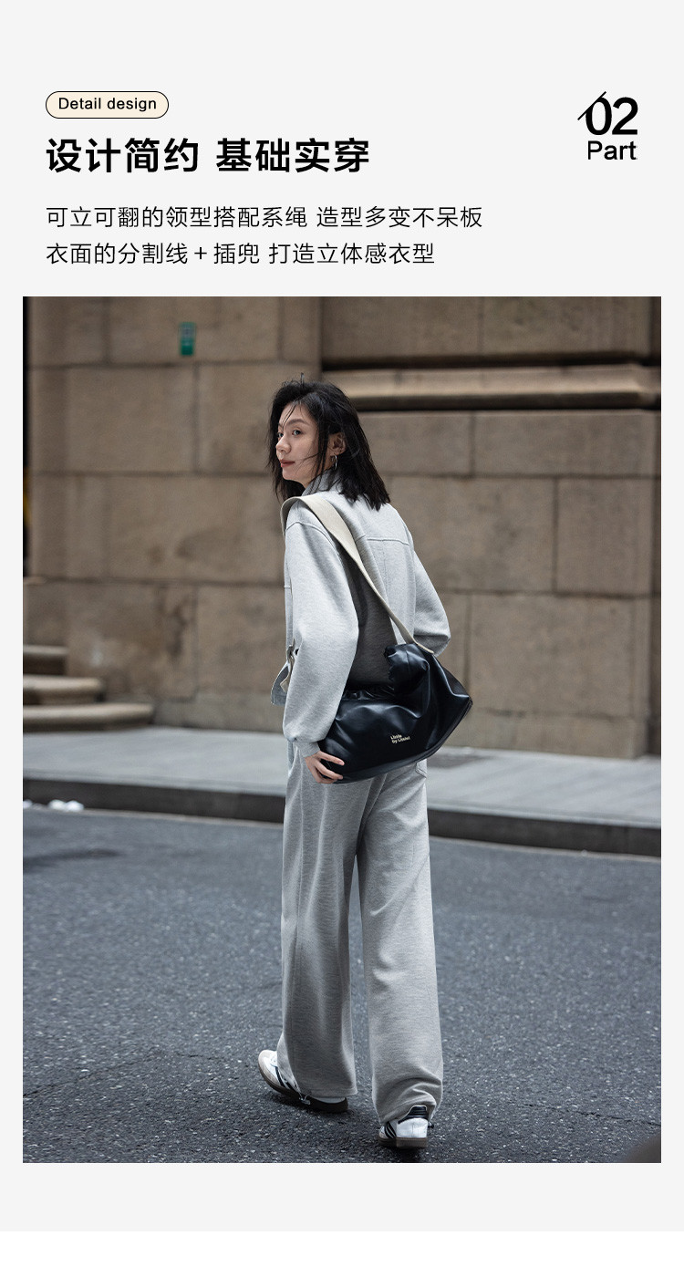 商品名称:【浅麻灰休闲套装】春秋休闲松弛感帅气立领短外套+直筒裤 457666