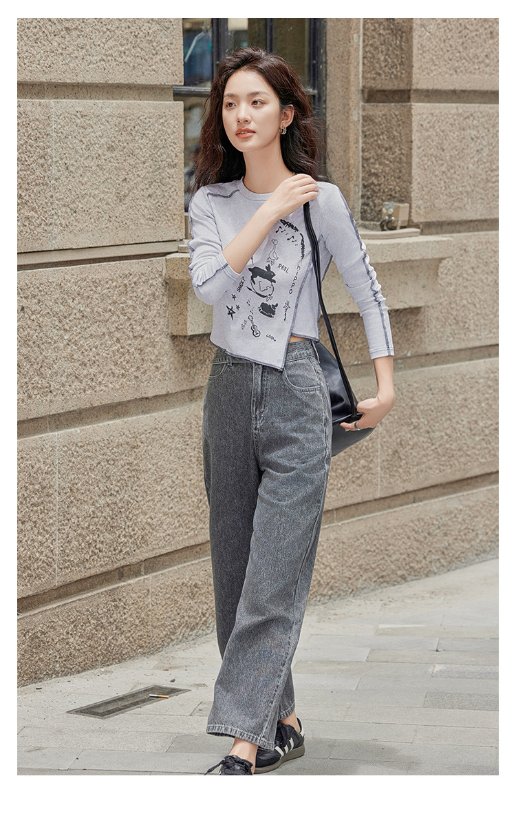 【炭灰色牛仔裤】秋直筒九分裤利落柔软垂顺百搭牛仔裤 388034
