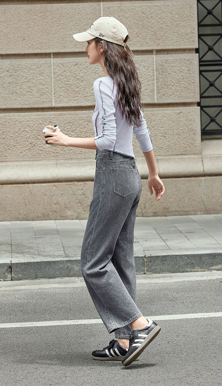 商品名称:【炭灰色牛仔裤】秋直筒九分裤利落柔软垂顺百搭牛仔裤 388034