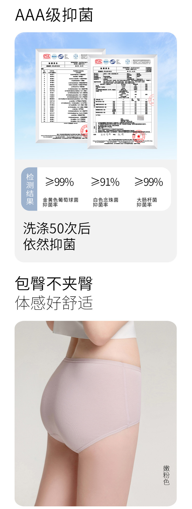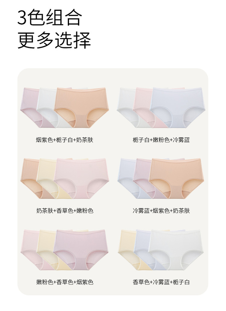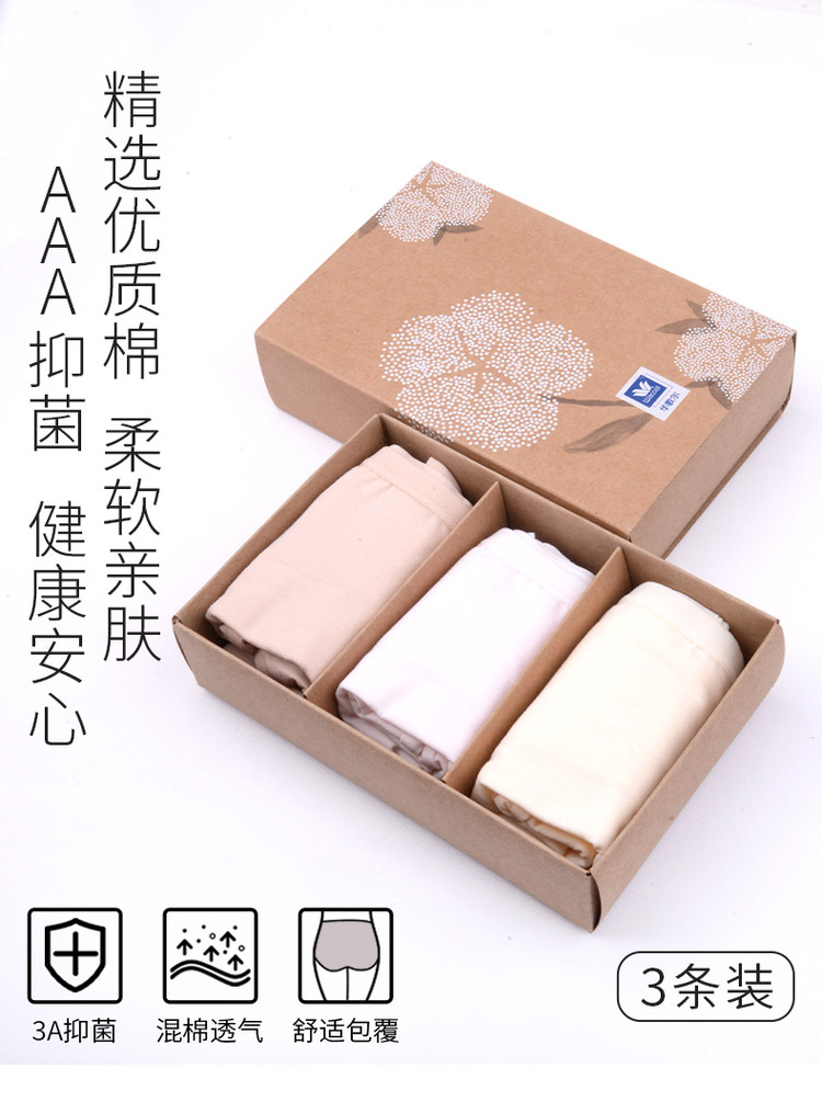 商品名称:【3条装】3A抑菌中高腰棉混三角内裤女 477637