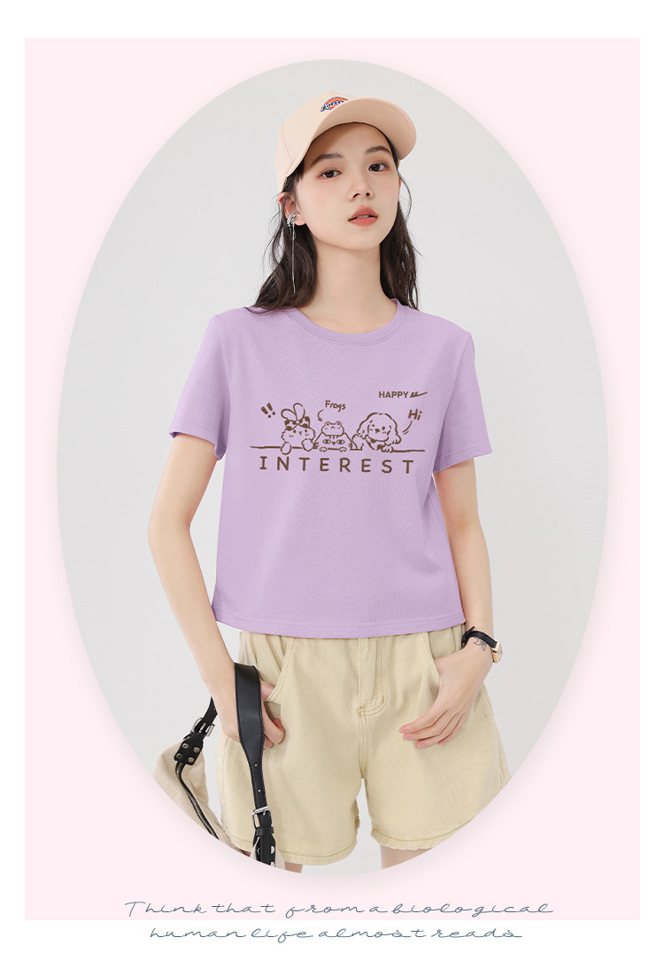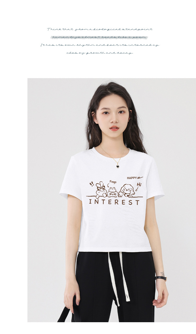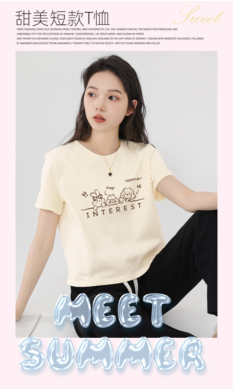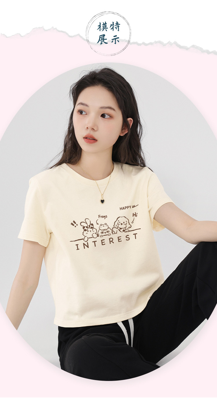 商品名称:【女装100%棉】夏季女式纯棉短袖T短款显瘦设计感甜辣风上衣 110099