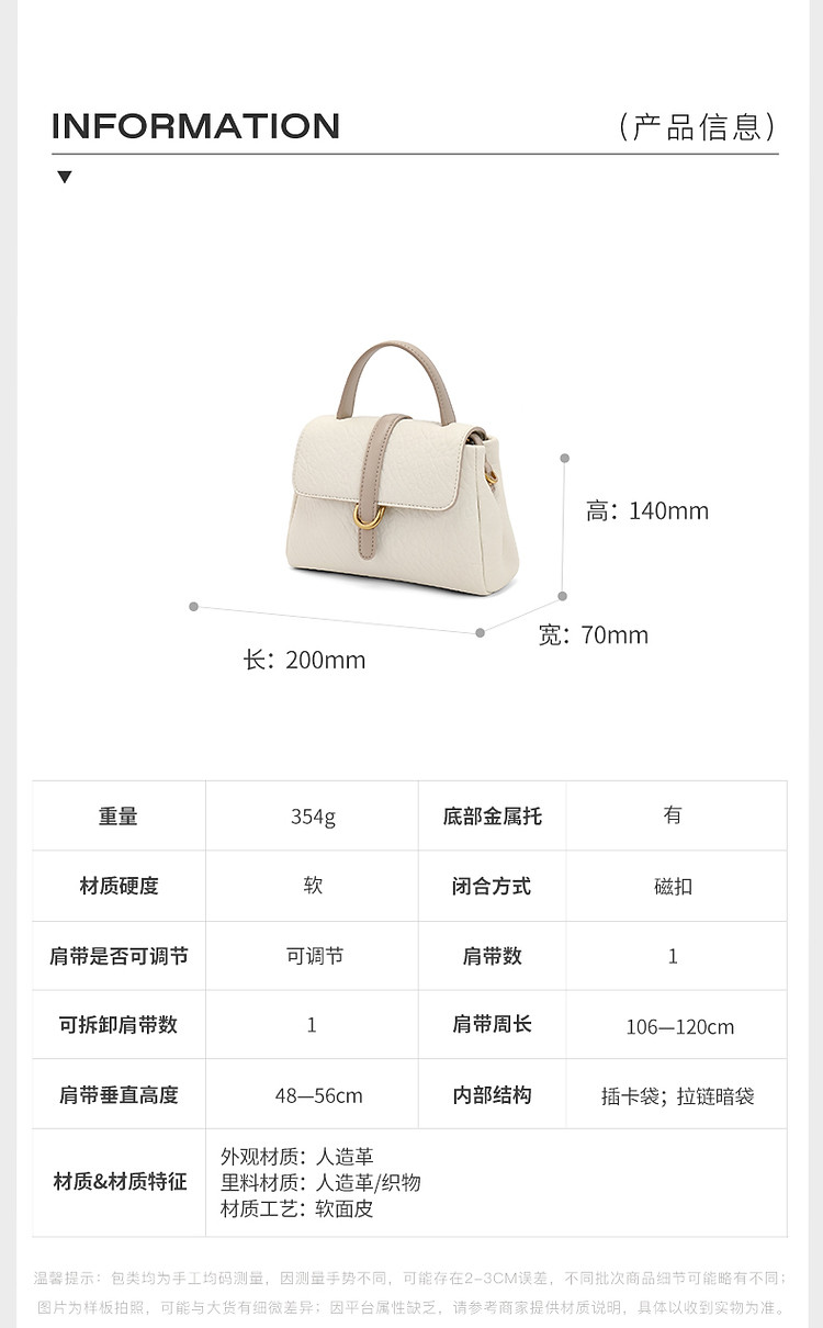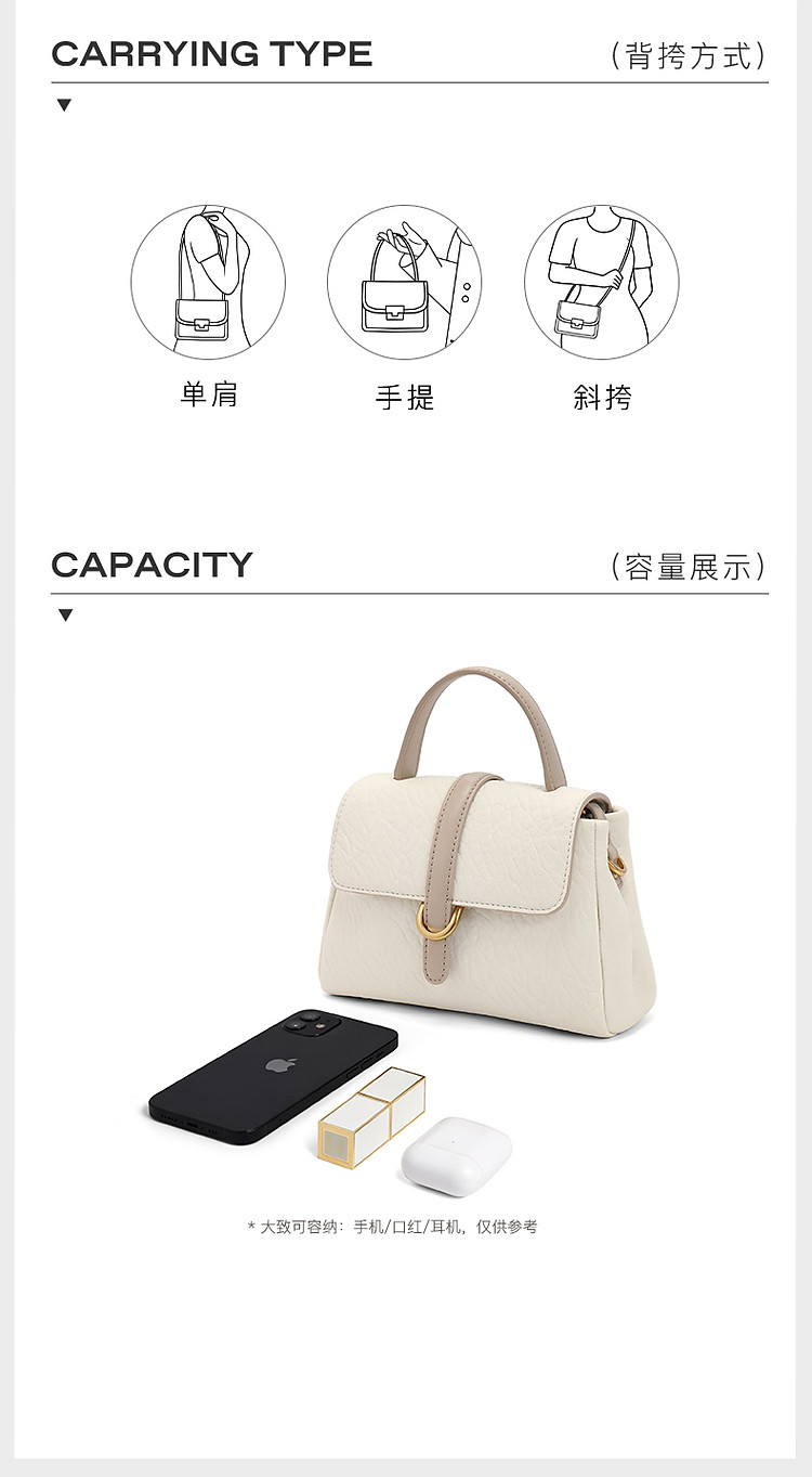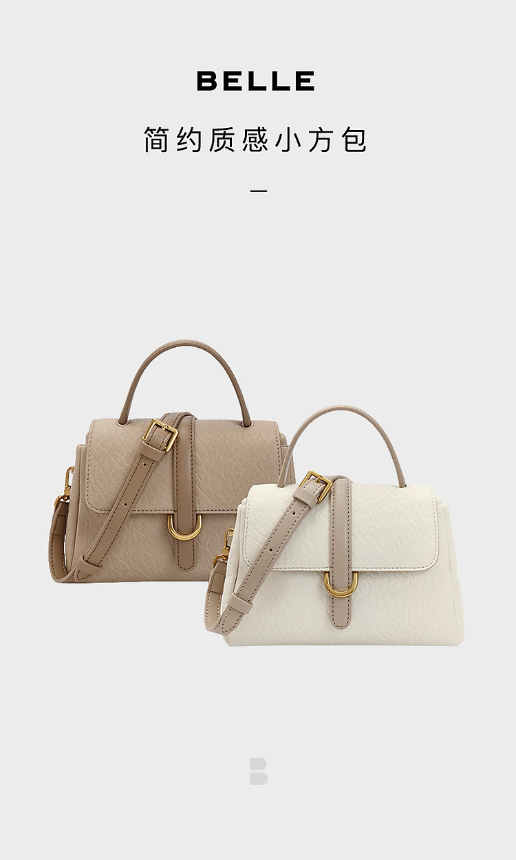 商品名称:【简约通勤】百丽春秋软感皱面质感单肩斜挎手提小方包 445786