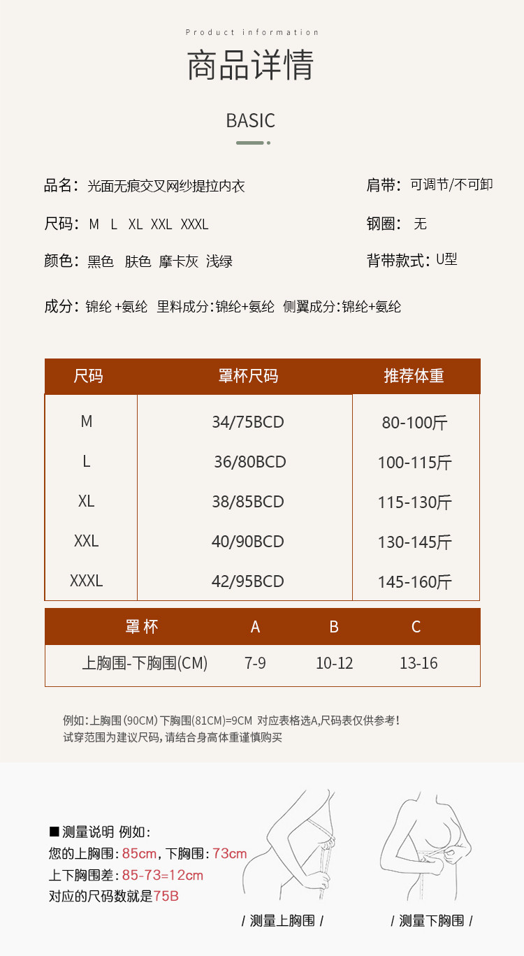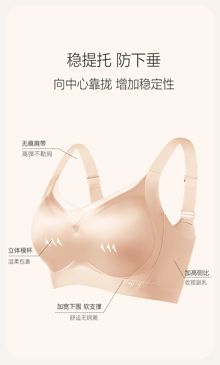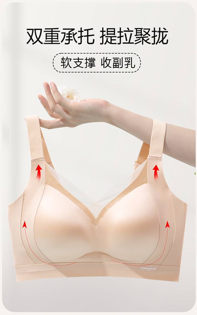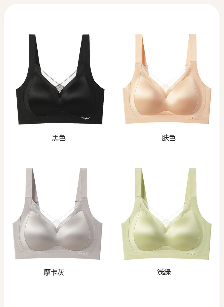 商品名称:【法式优雅】内衣女光面无痕交叉蕾丝网纱聚拢提拉防下垂文胸罩 319838