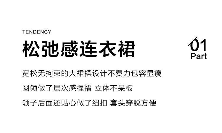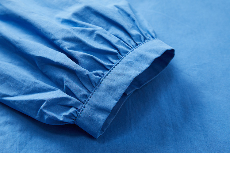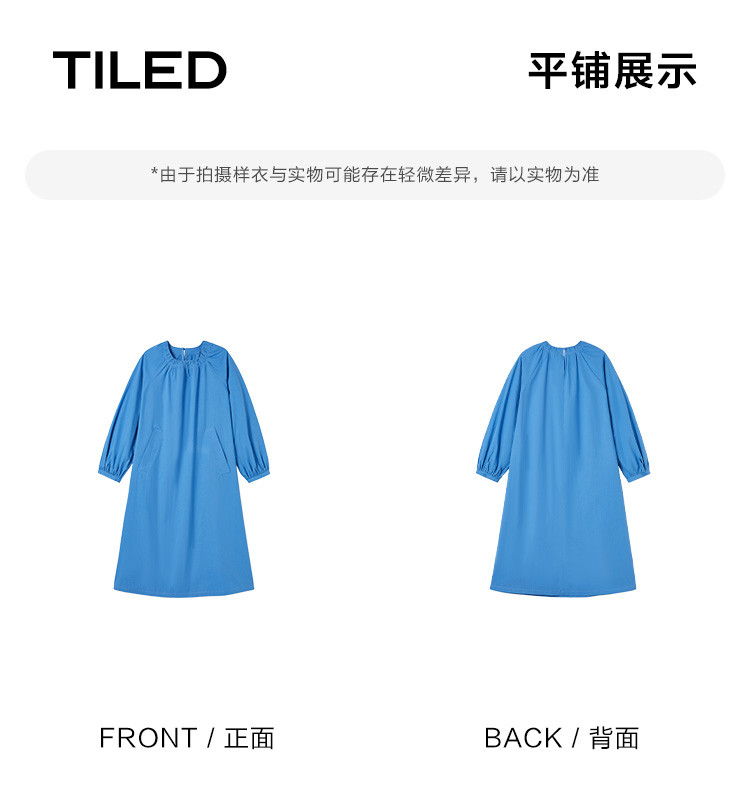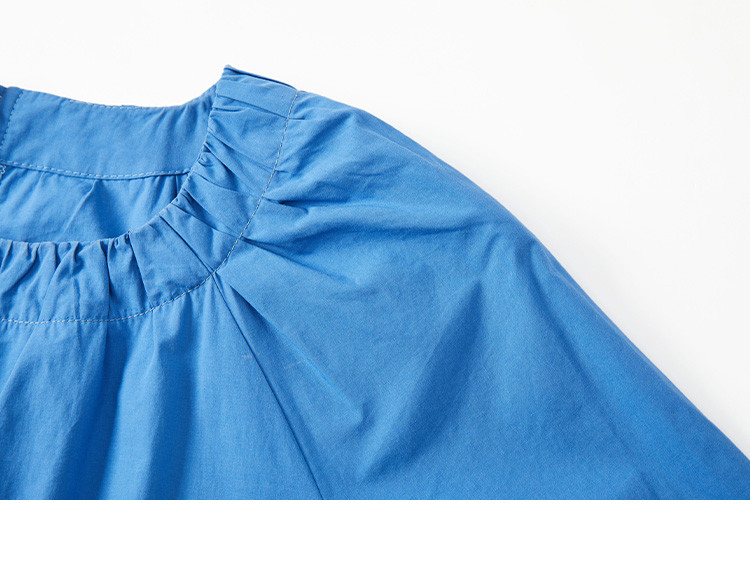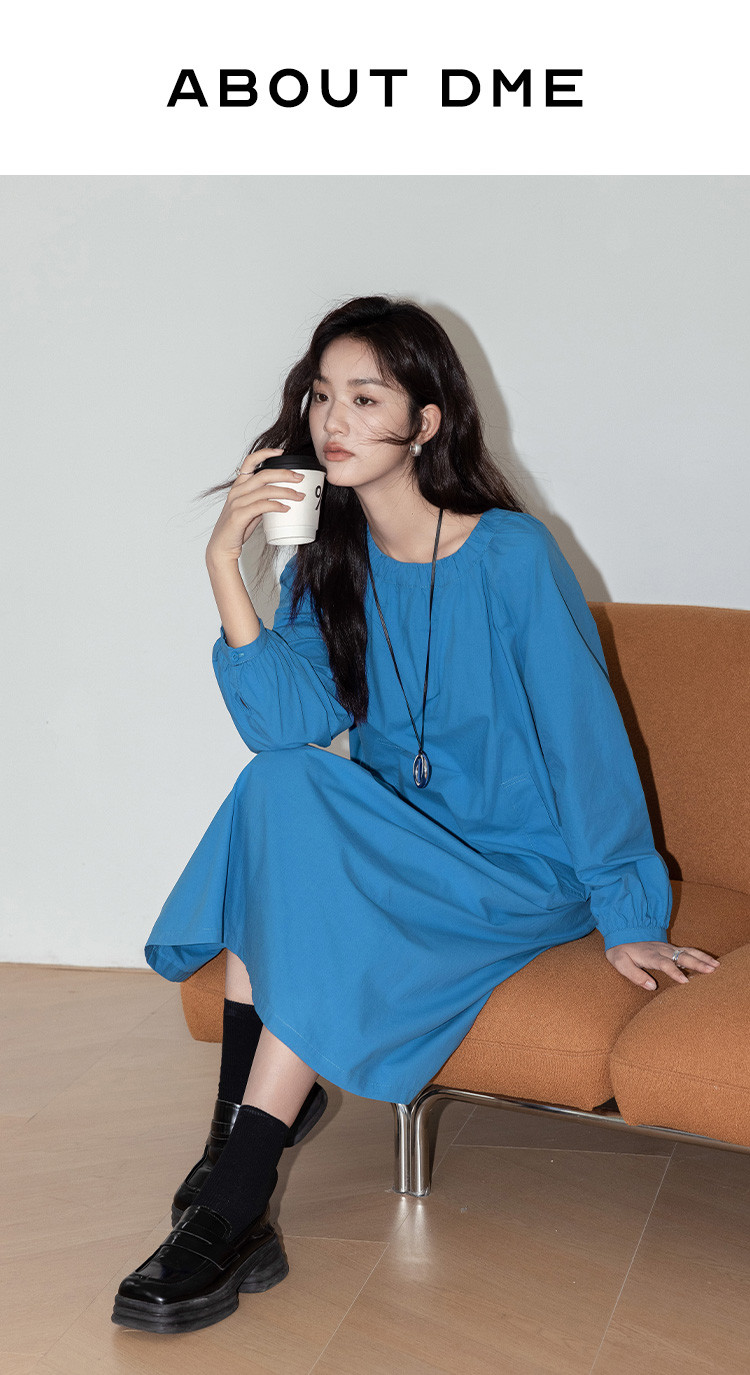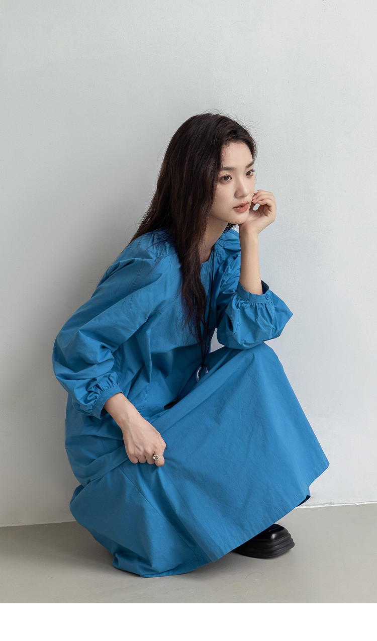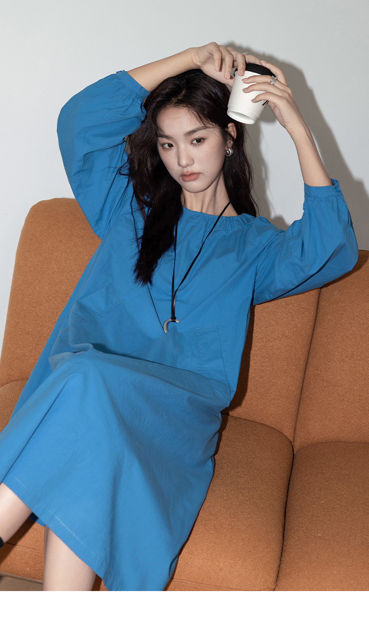 商品名称:【简约治愈蓝长裙】秋圆领套头领口抽褶长袖中长款连衣裙 423426