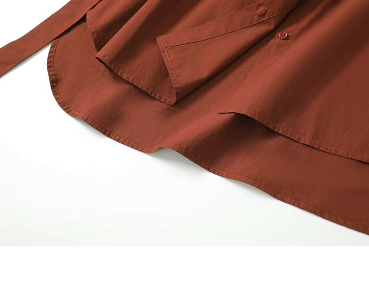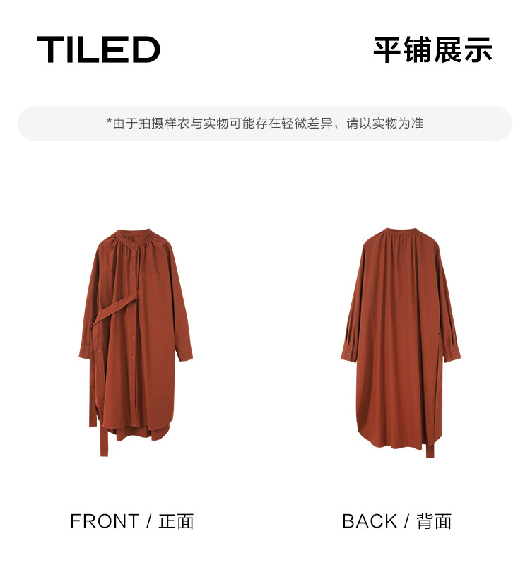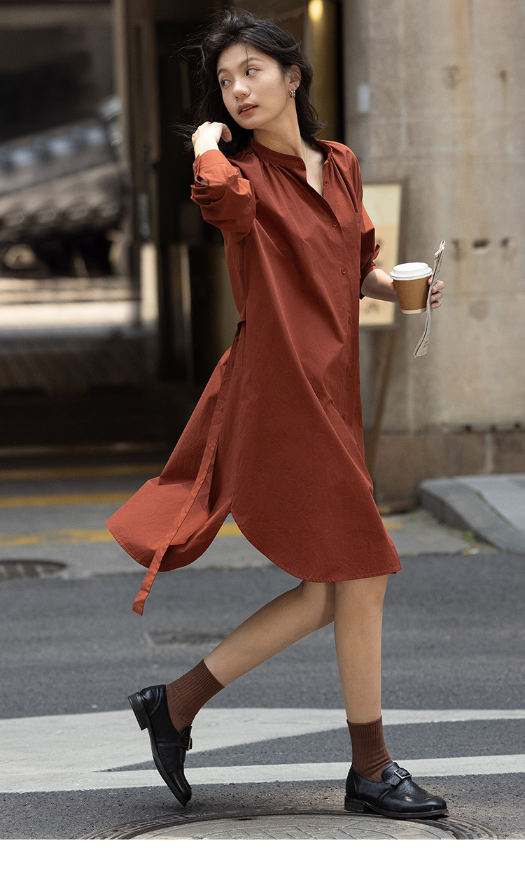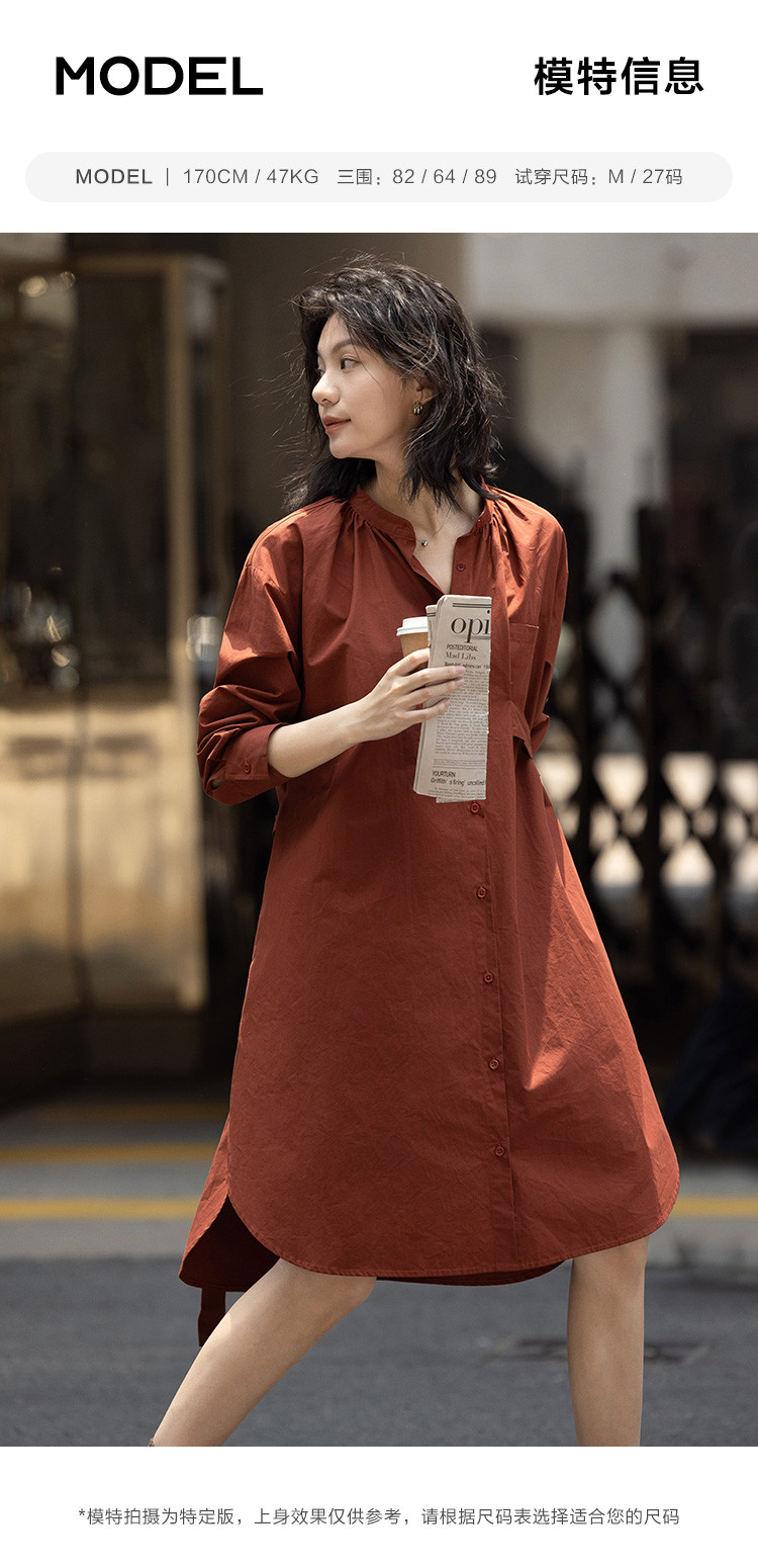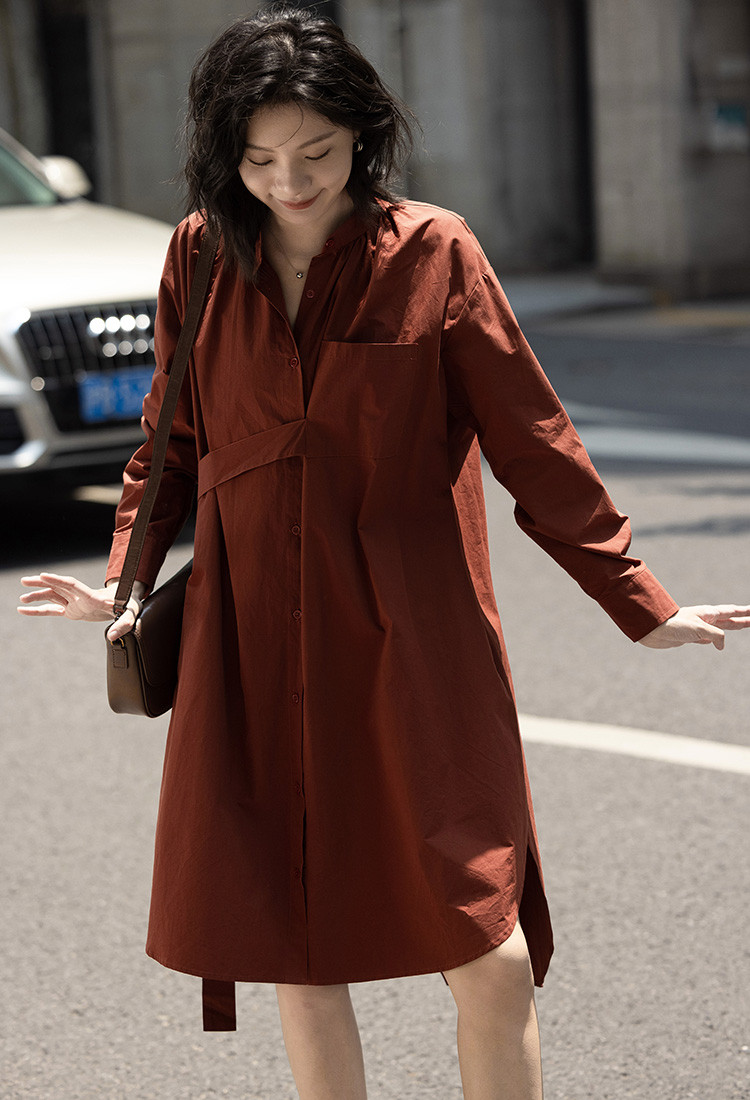 商品名称:【复古红衬衫裙】秋腰间系带小众设计感松弛显瘦连衣裙 460290