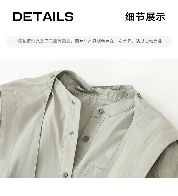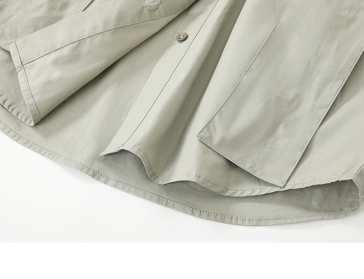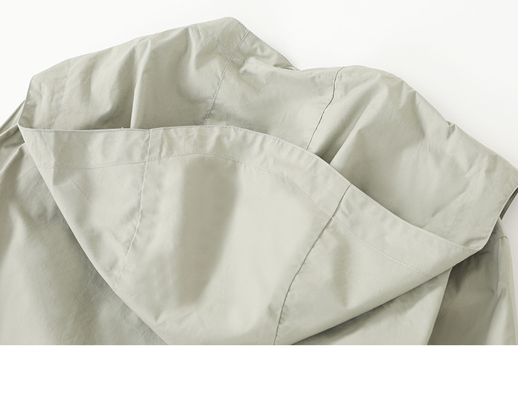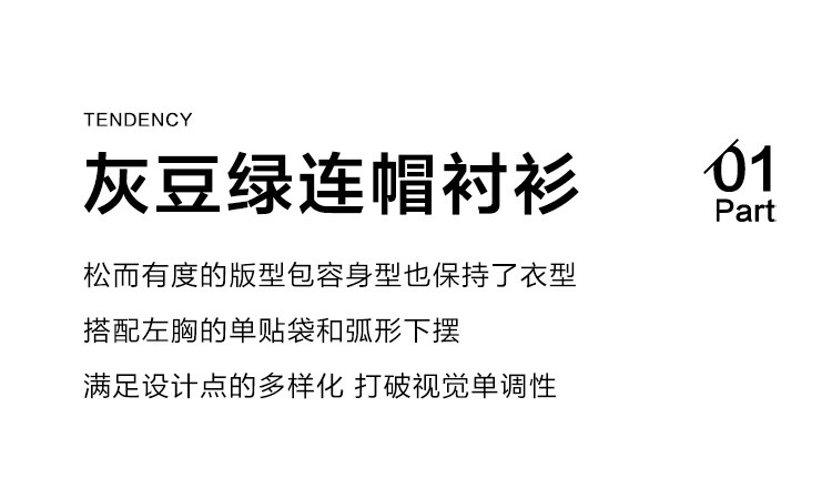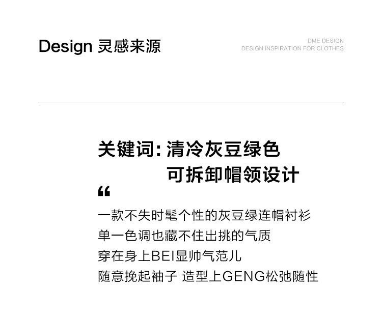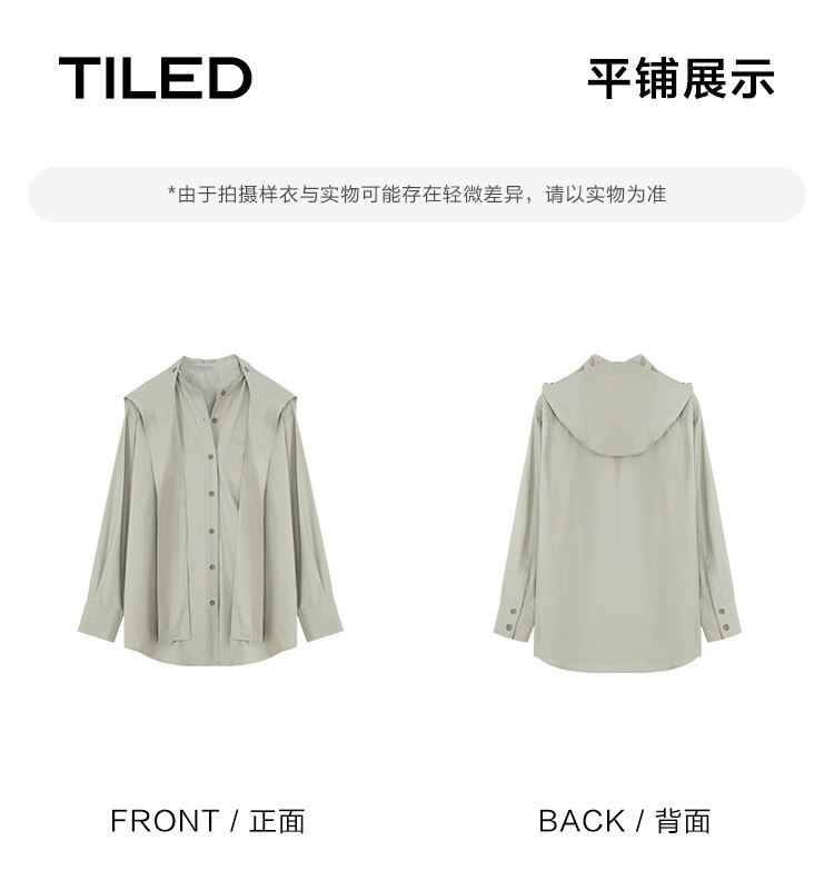 商品名称:【灰豆绿连帽衬衫】秋两穿可拆卸帽领时髦单贴袋上衣女 337410