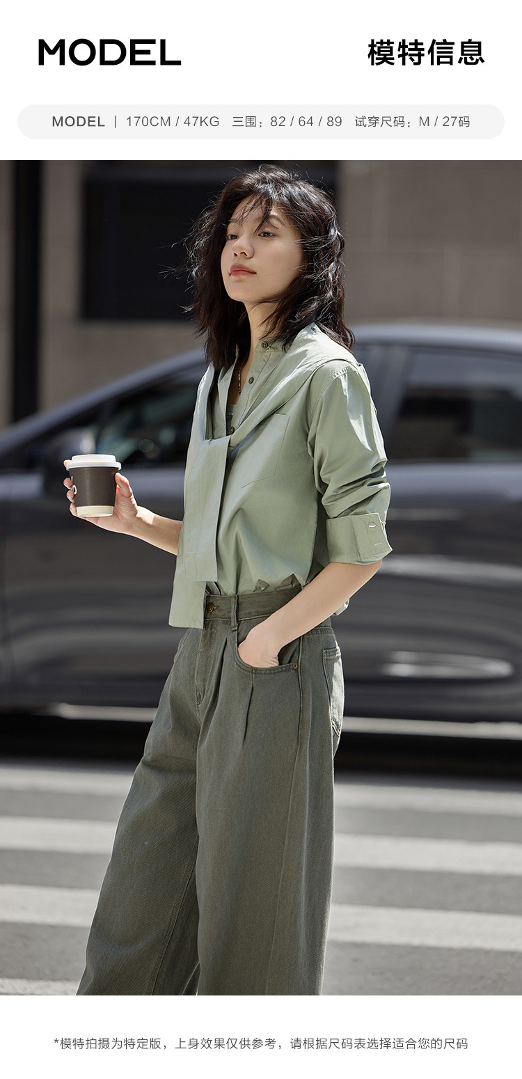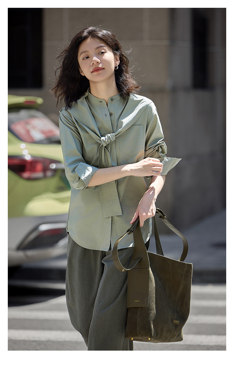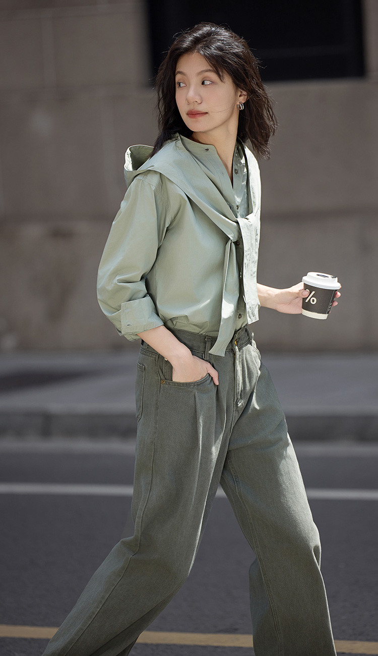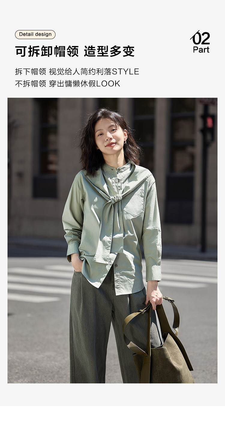 【灰豆绿连帽衬衫】秋两穿可拆卸帽领时髦单贴袋上衣女 337410