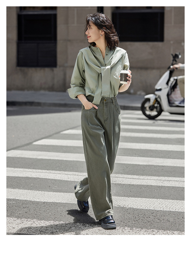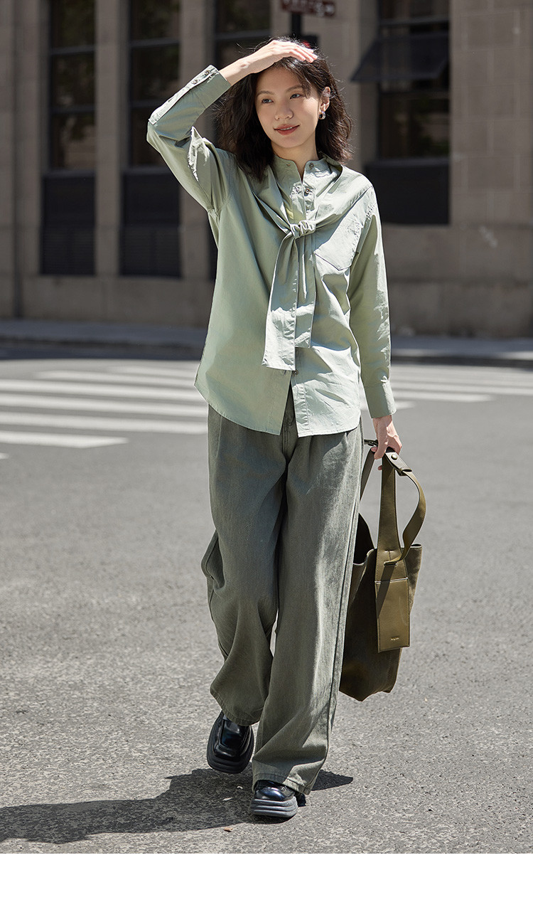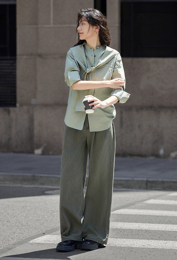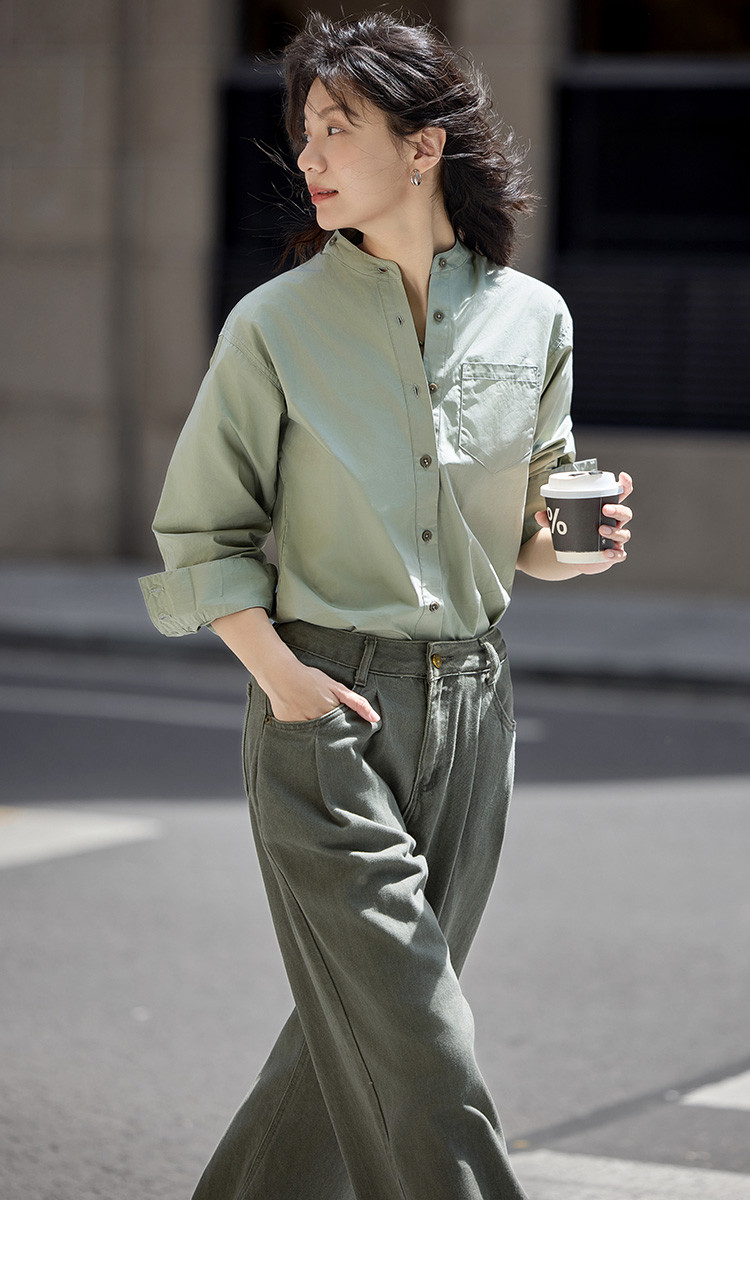 【灰豆绿连帽衬衫】秋两穿可拆卸帽领时髦单贴袋上衣女 337410