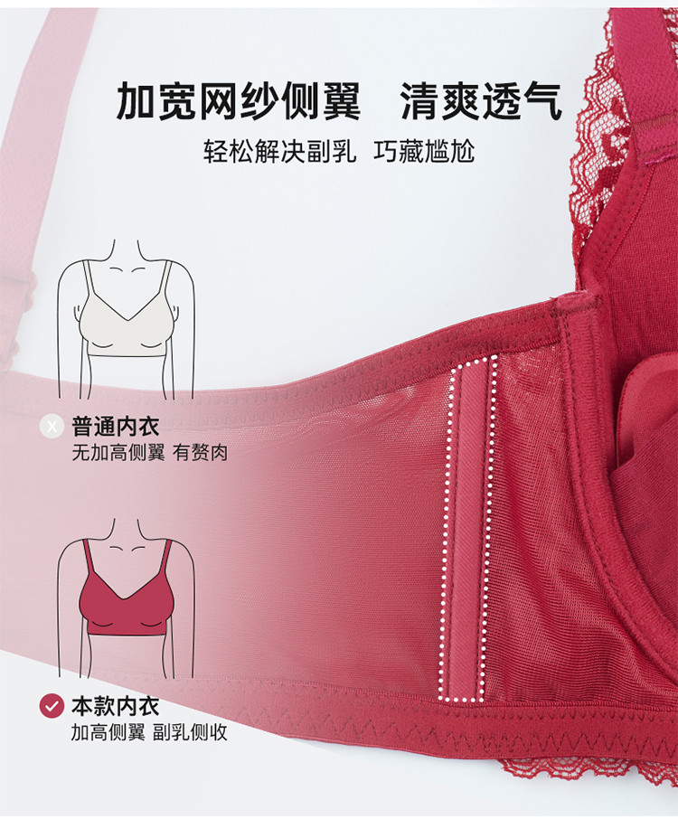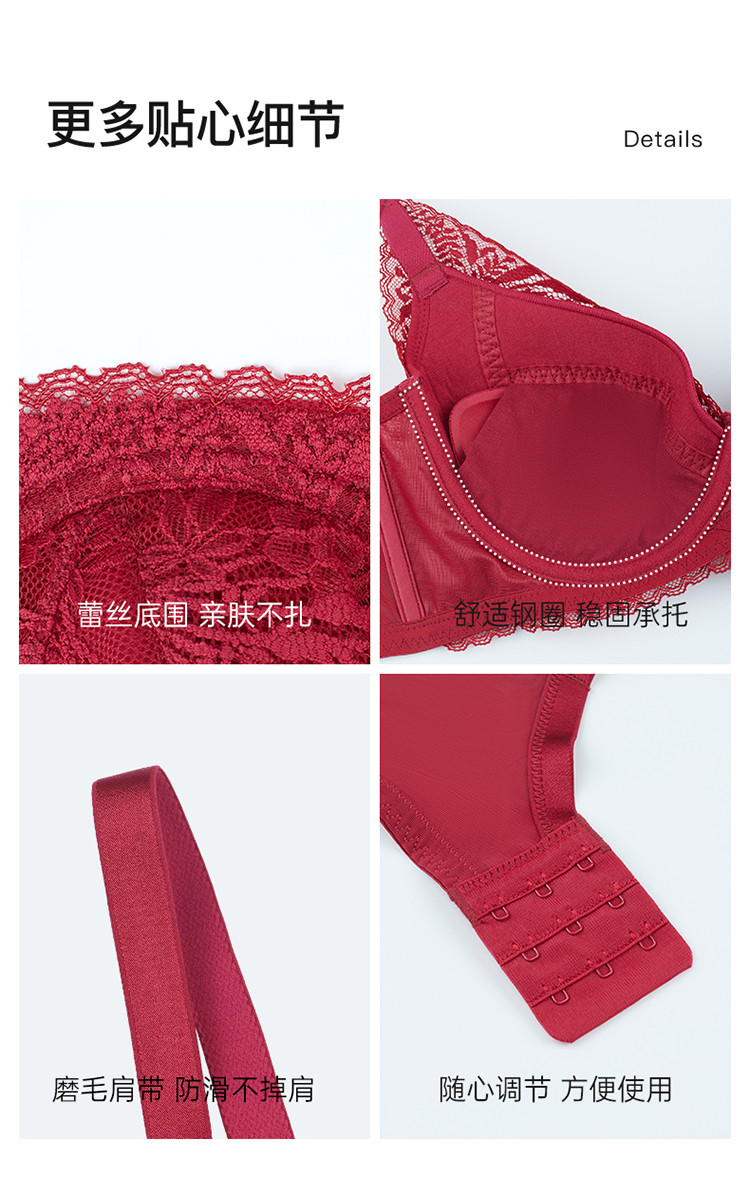 商品名称:【舒适优质棉里料】本命红小胸显大聚拢承托防下垂文胸罩女 845067