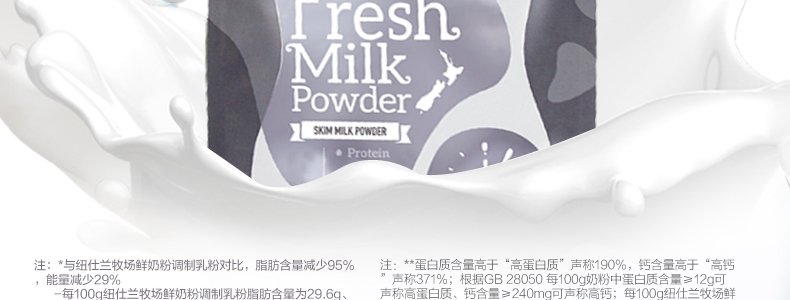 商品名称:新西兰 纽仕兰(Theland)脱脂高蛋白高钙鲜奶粉 1kg