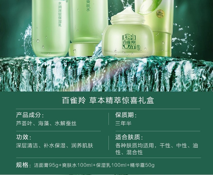 商品名称:百雀羚套装护肤品套装补水保湿 草本精萃惊喜礼盒七夕情人节礼物送女友