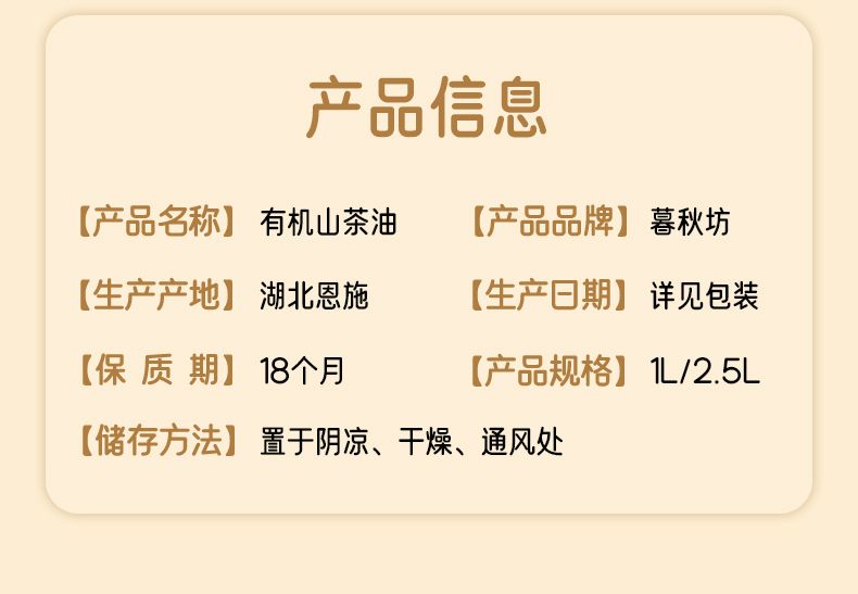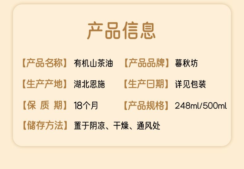商品名称:陇间柒月 暮秋坊有机山茶油