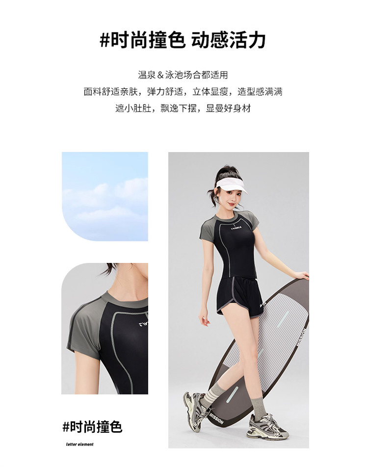 商品名称:泳衣女士高级感分体泳衣运动风遮肚显瘦泡温泉海边沙滩度假泳衣女 333011