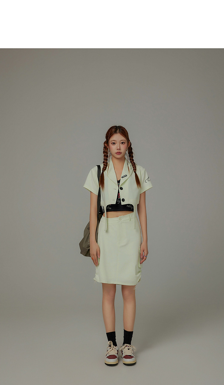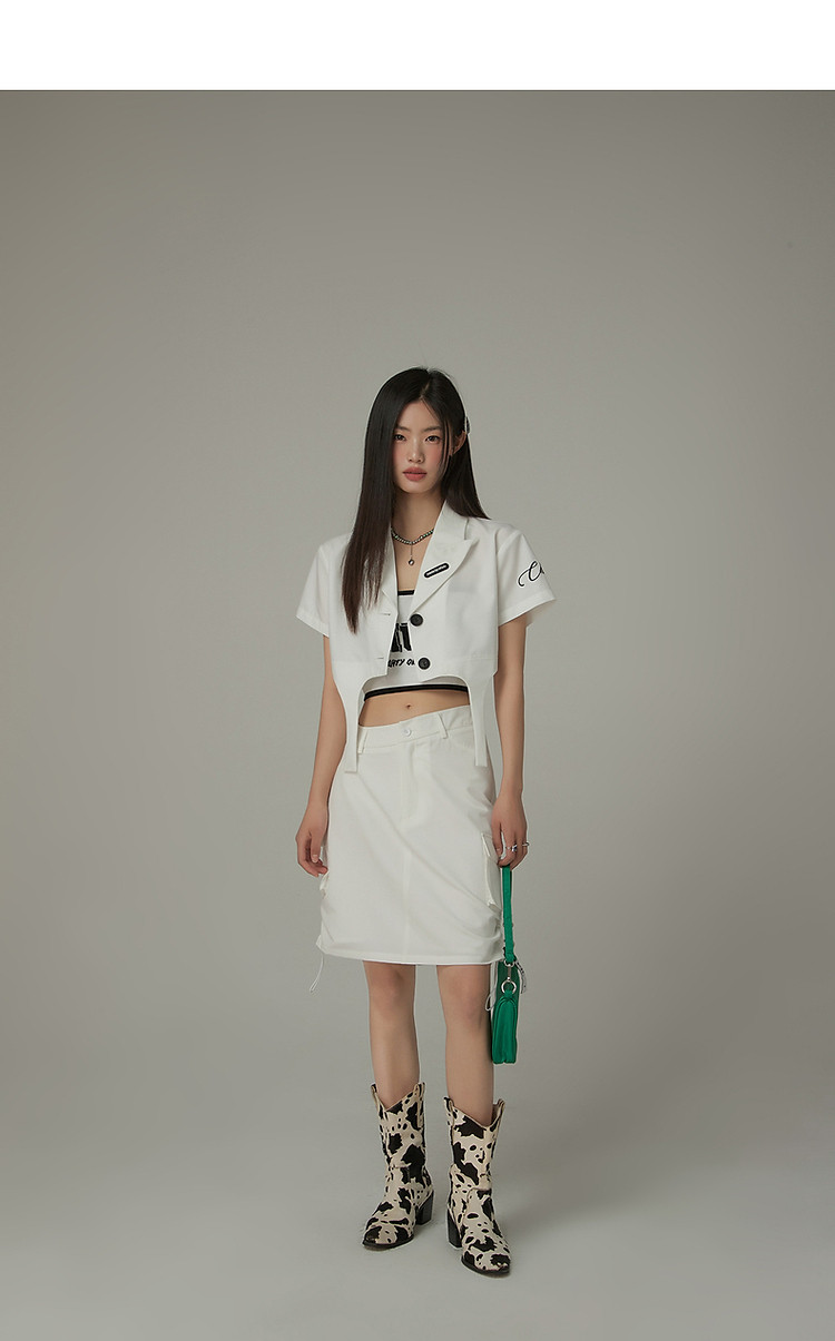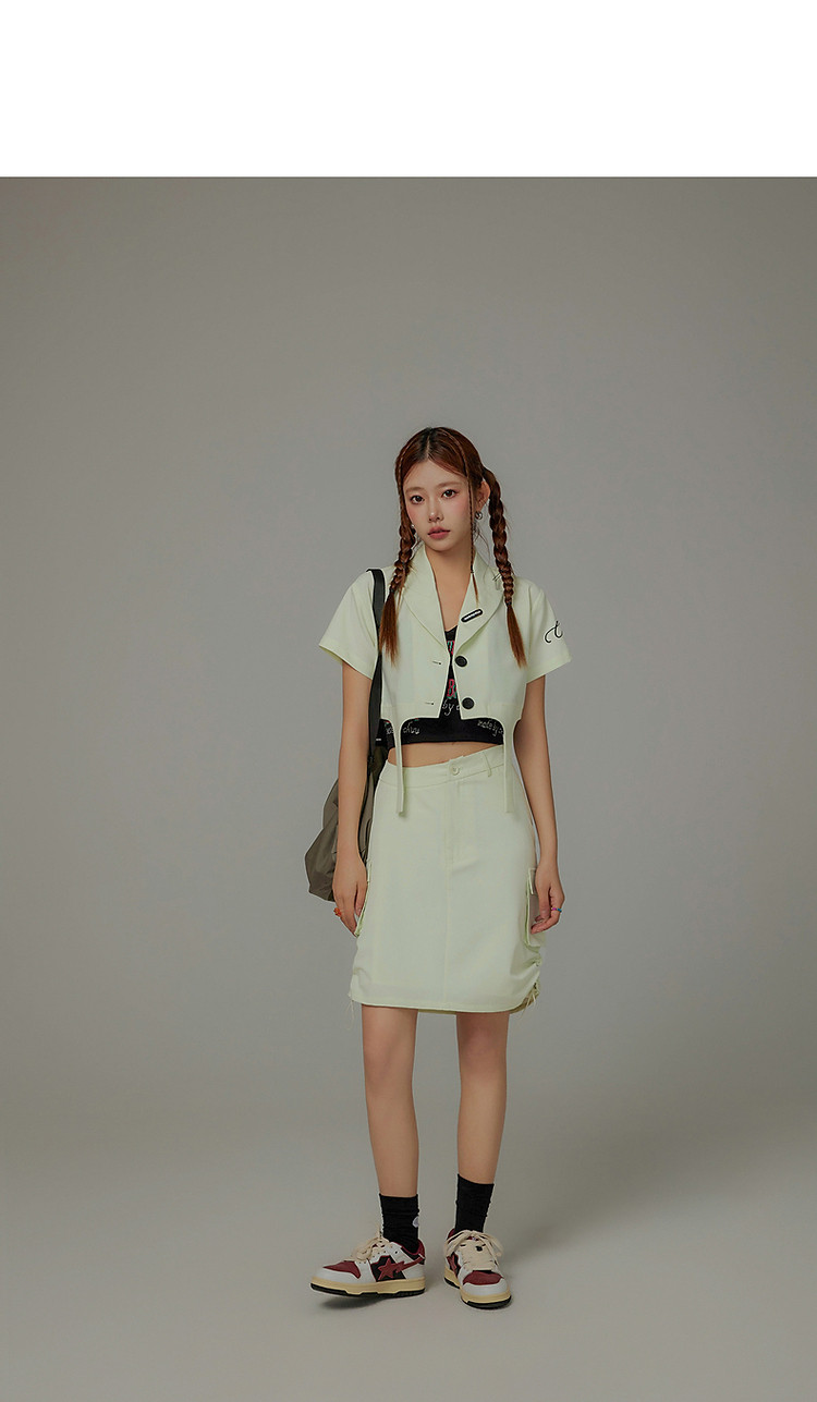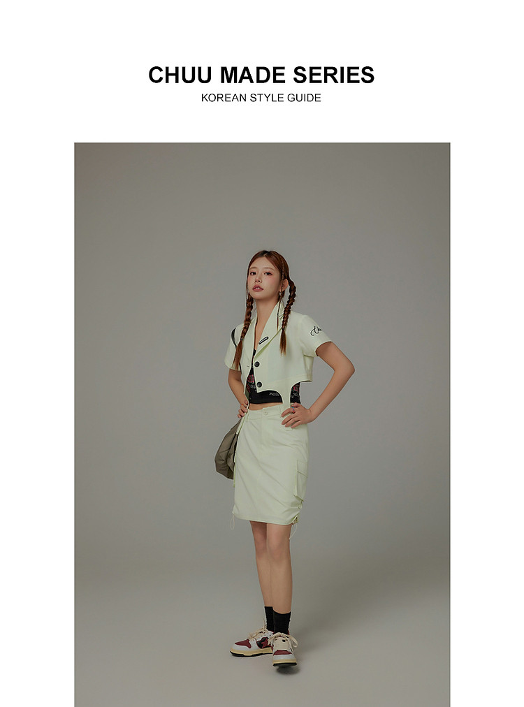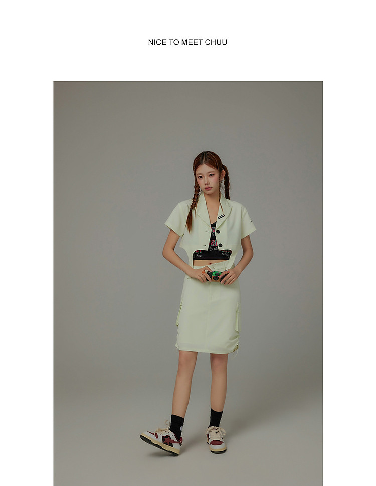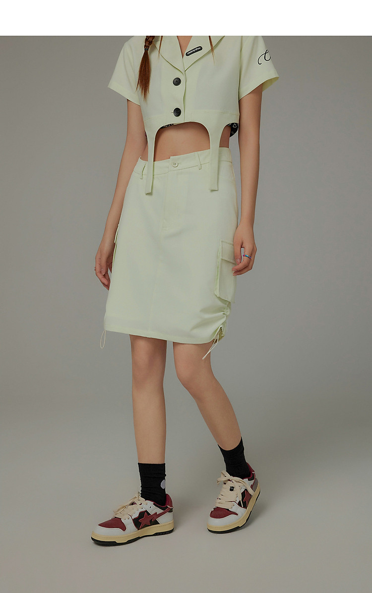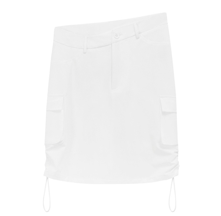 CHUU抽绳褶皱斜腰半身裙女士秋a字短裙子 645203