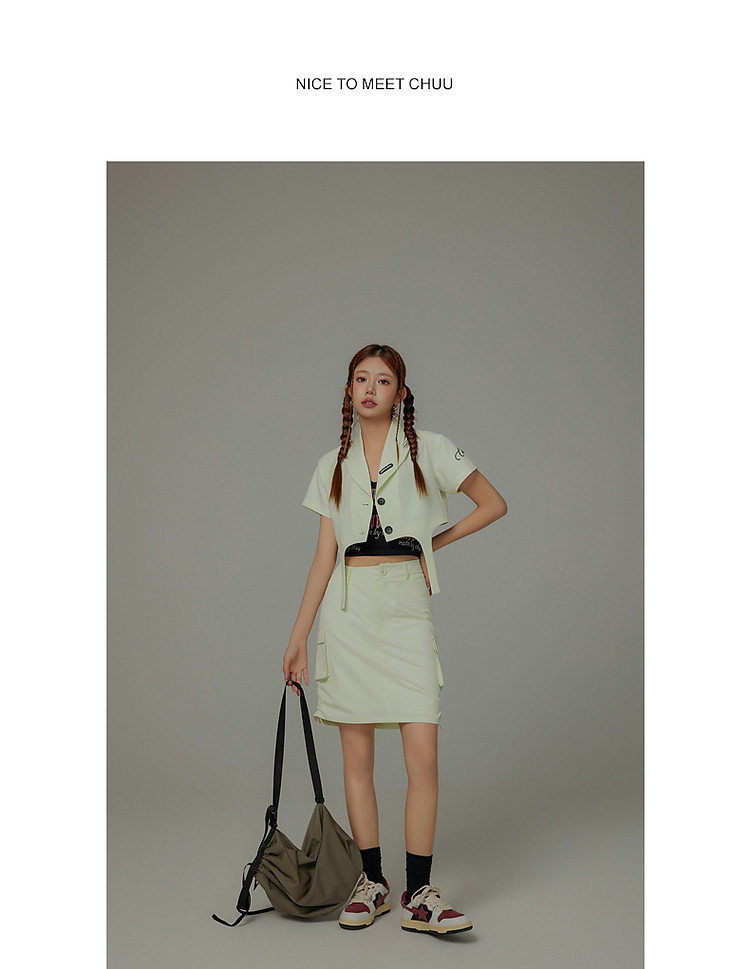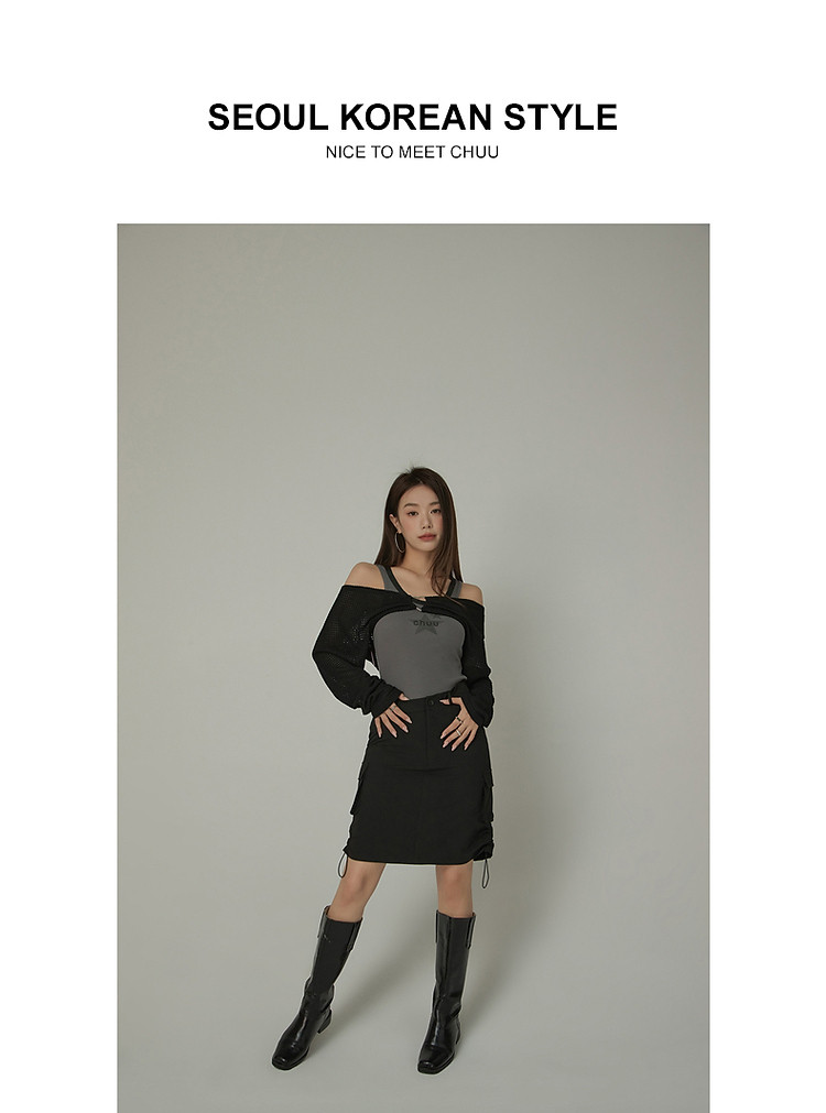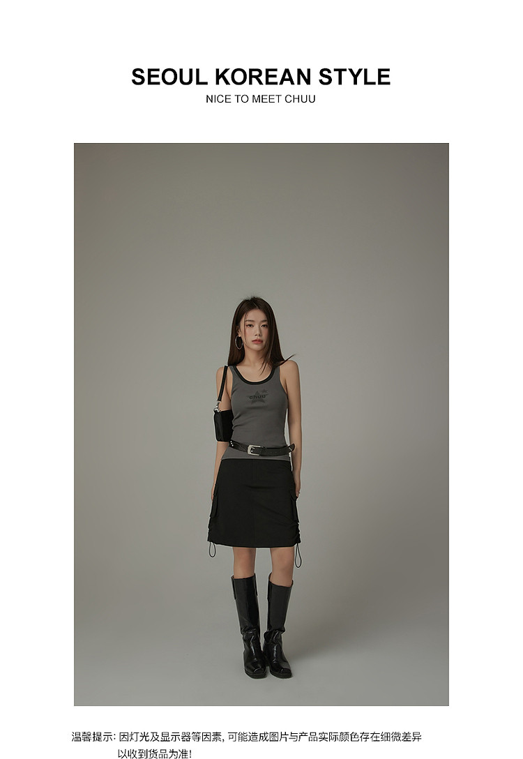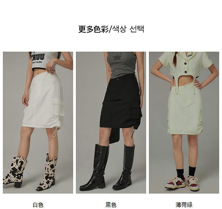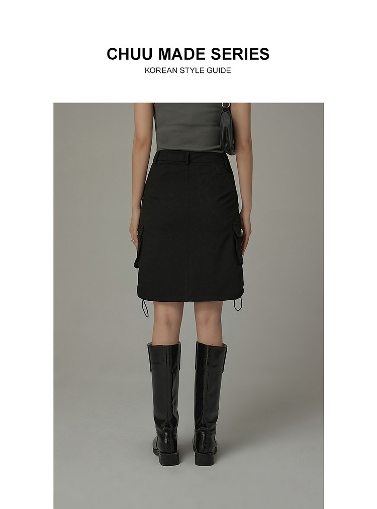 商品名称:CHUU抽绳褶皱斜腰半身裙女士秋a字短裙子 645203