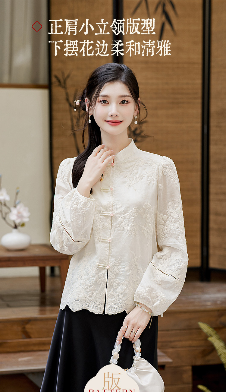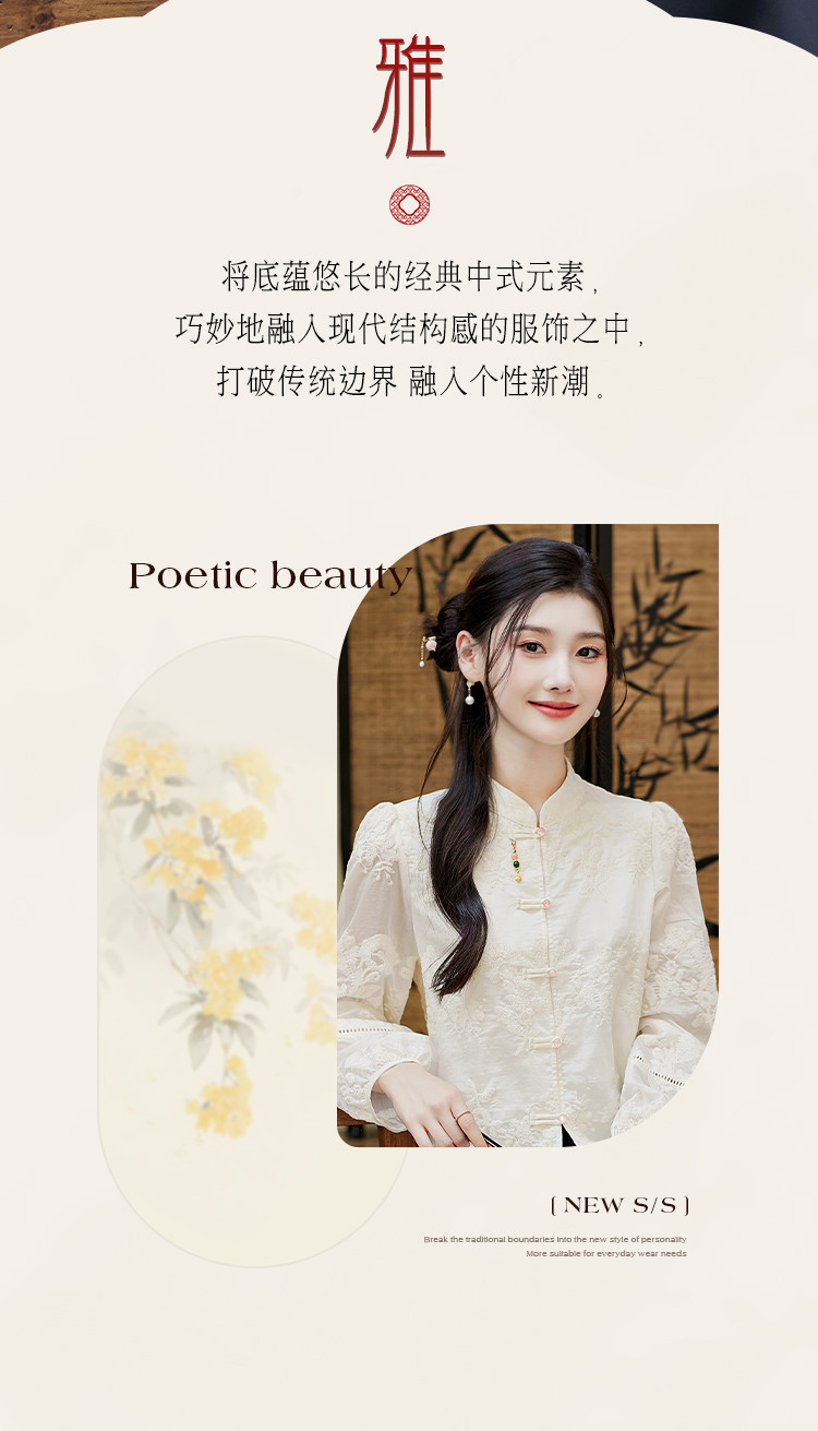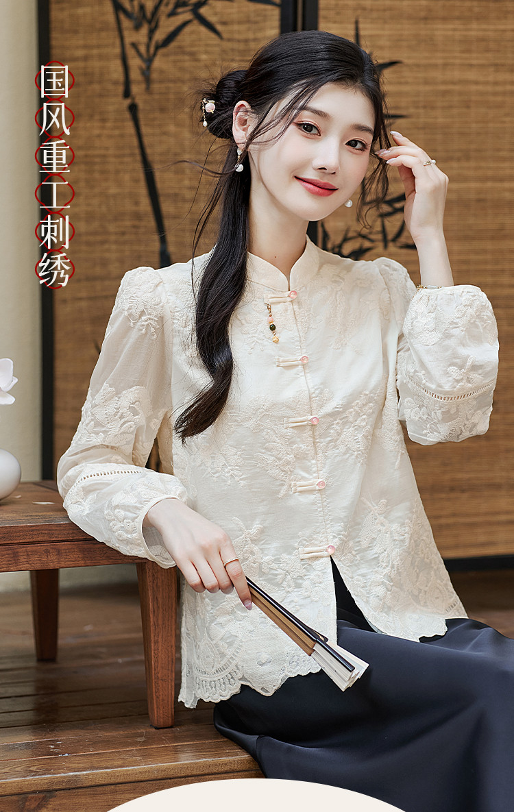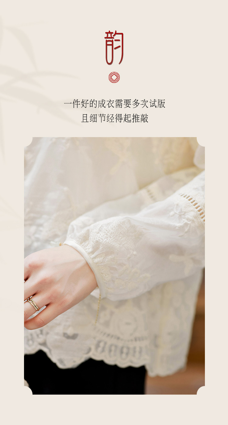 商品名称:【清欢雅韵】春高级感轻奢天丝改良重工刺绣设计感小个子衬衫 118552