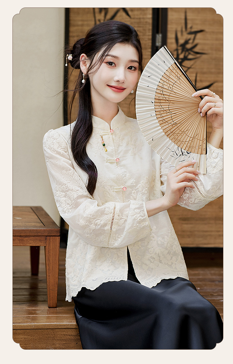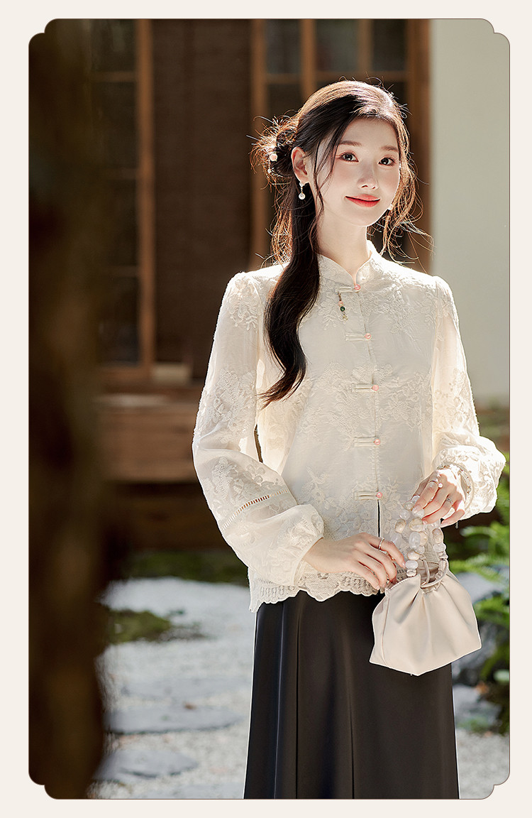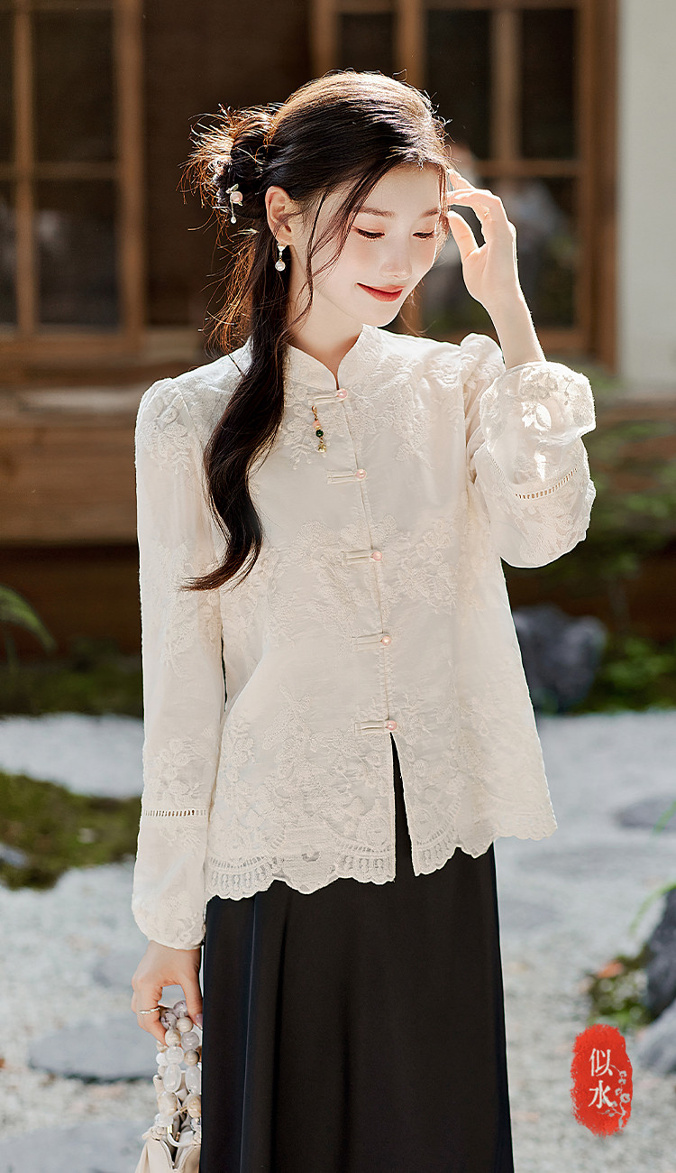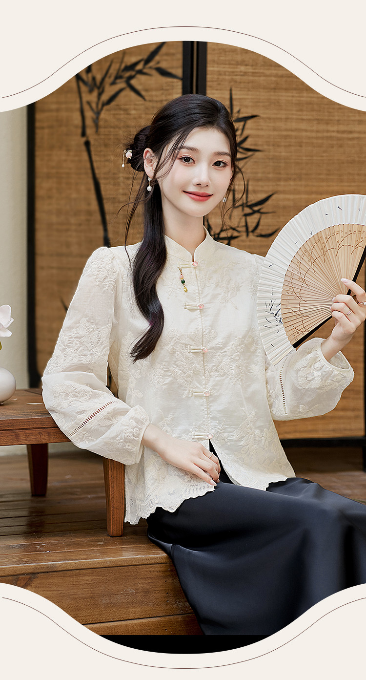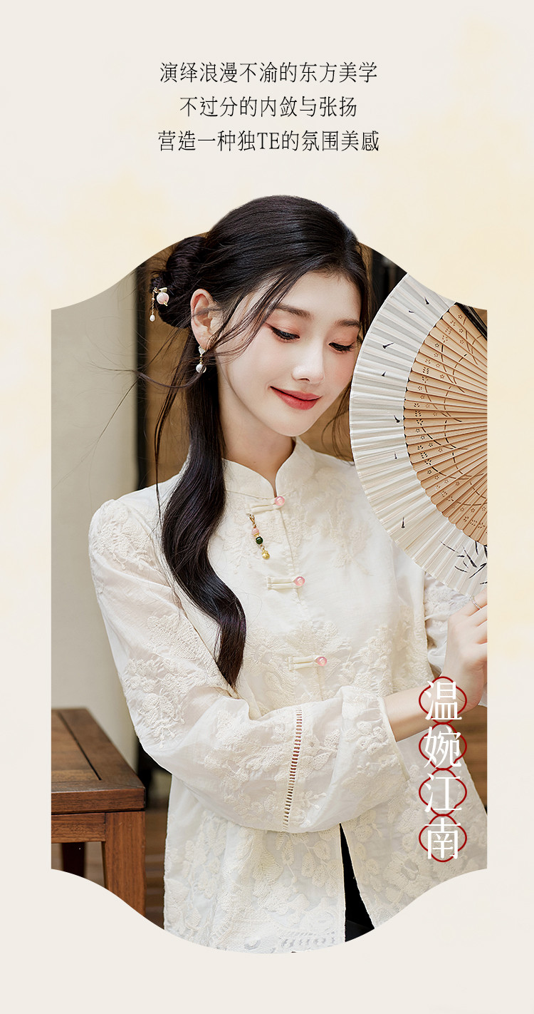 商品名称:【清欢雅韵】春高级感轻奢天丝改良重工刺绣设计感小个子衬衫 118552
