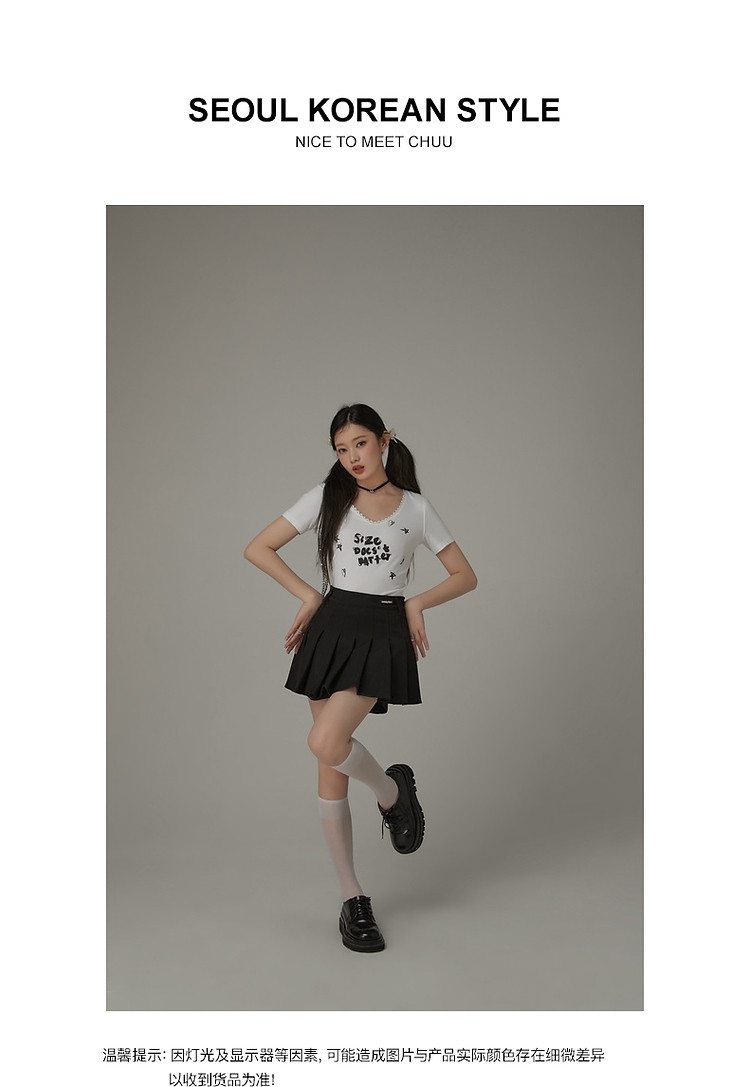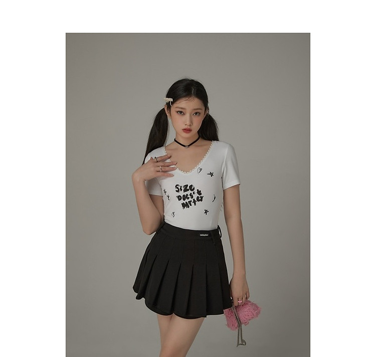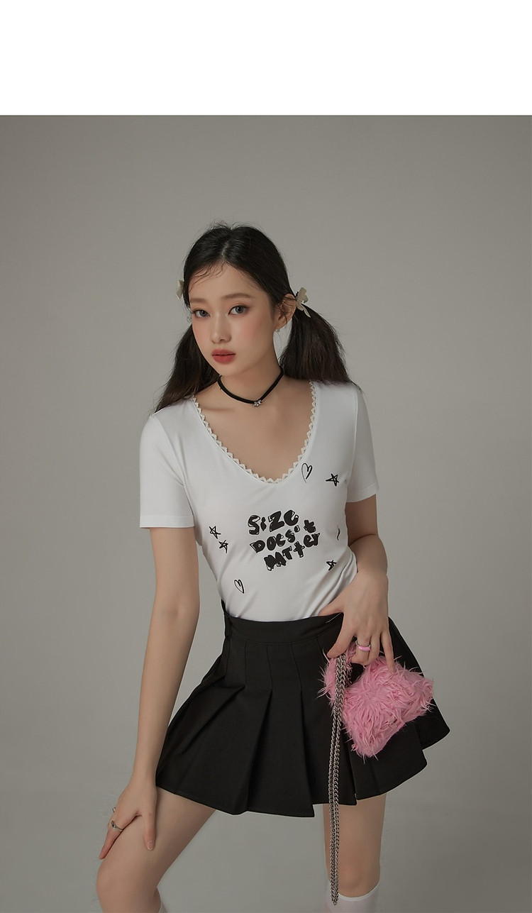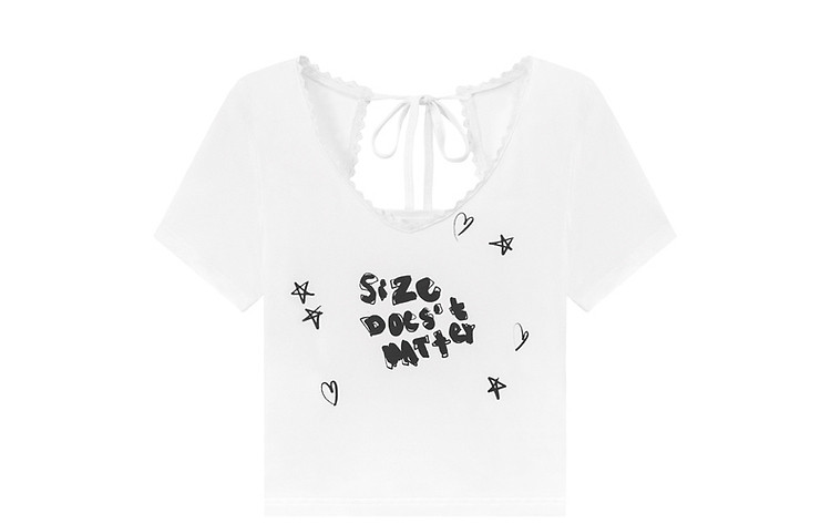 商品名称:系带镂空T恤女秋甜辣修身V领字母短款上衣 432211