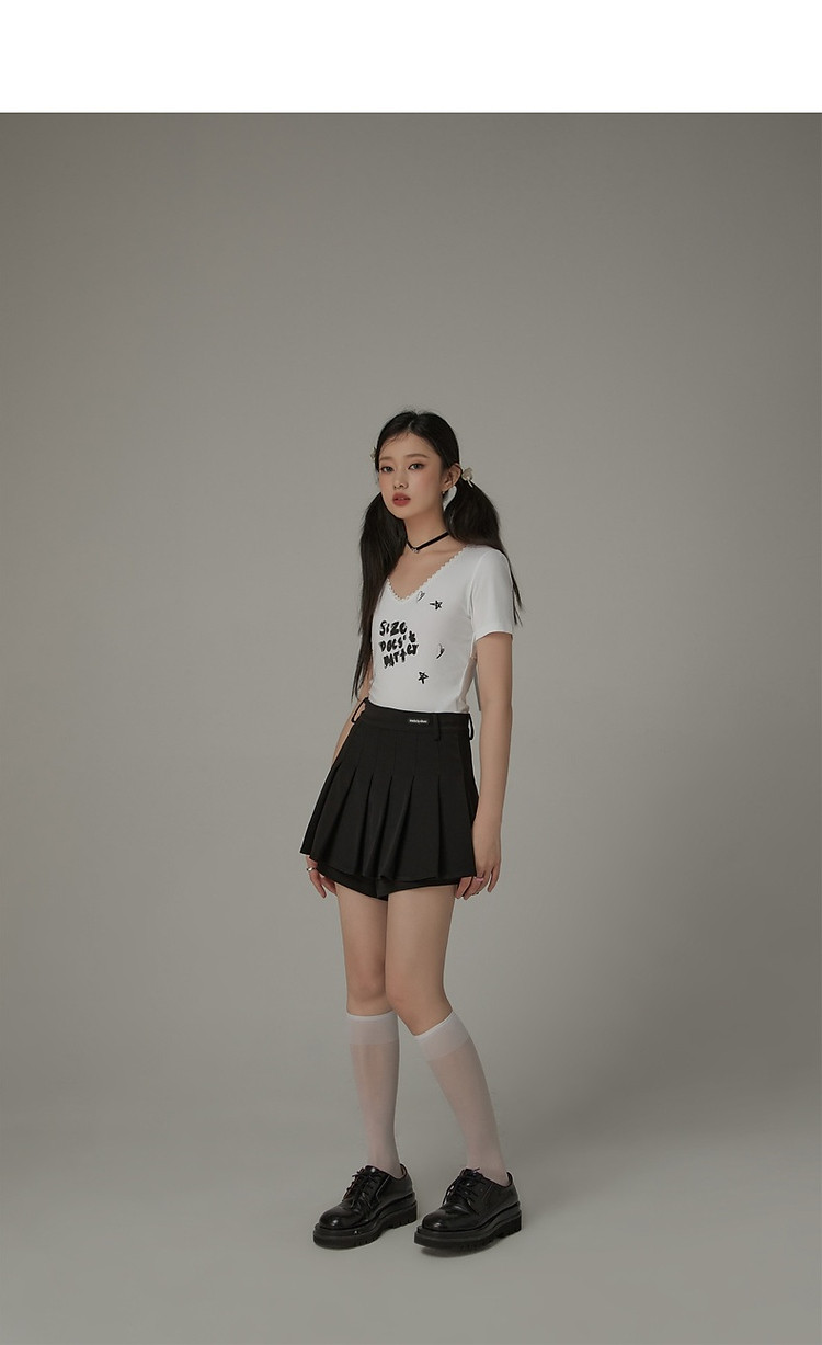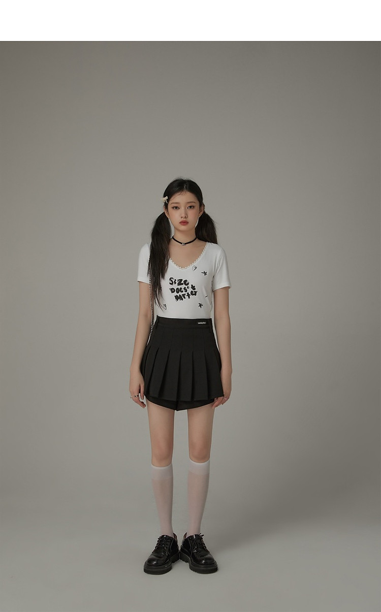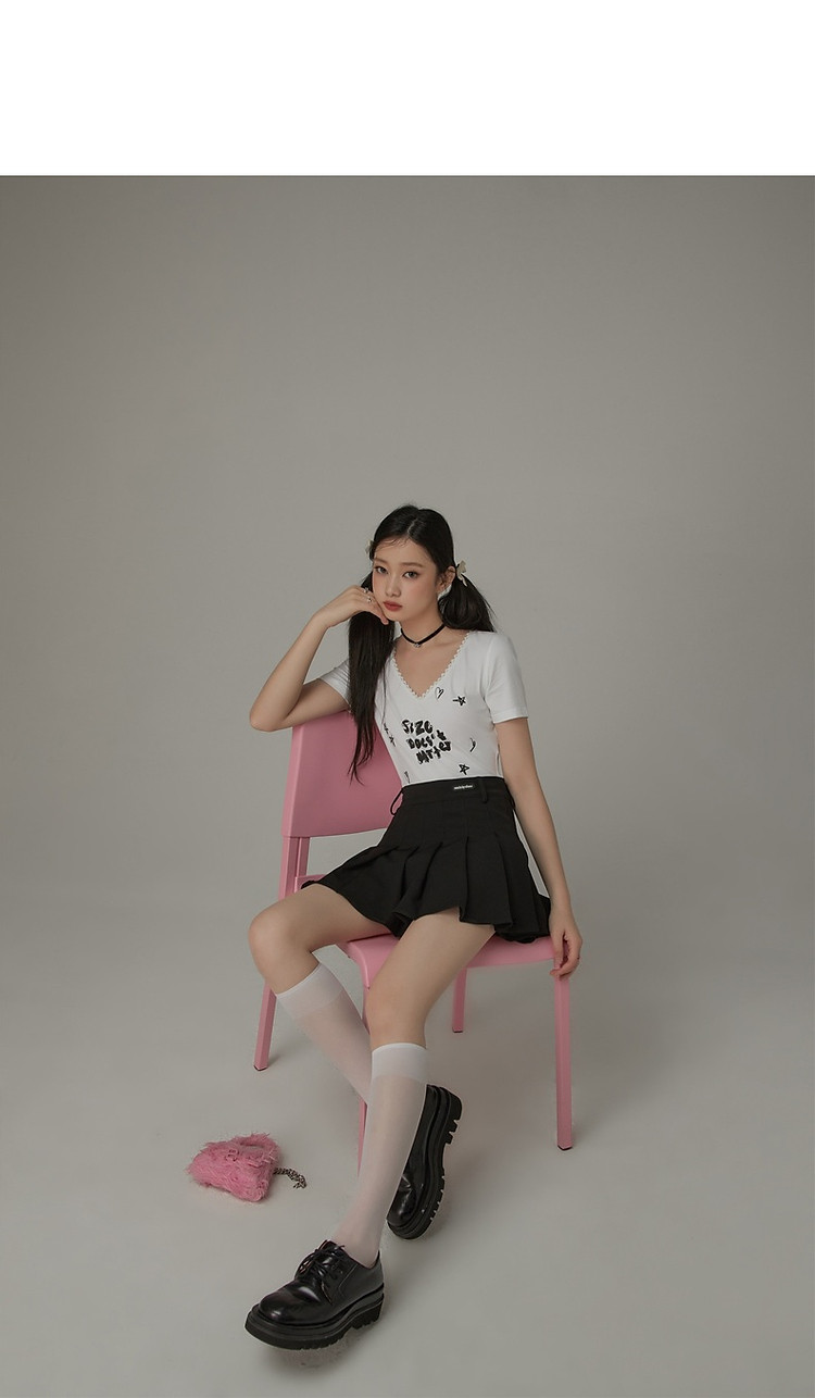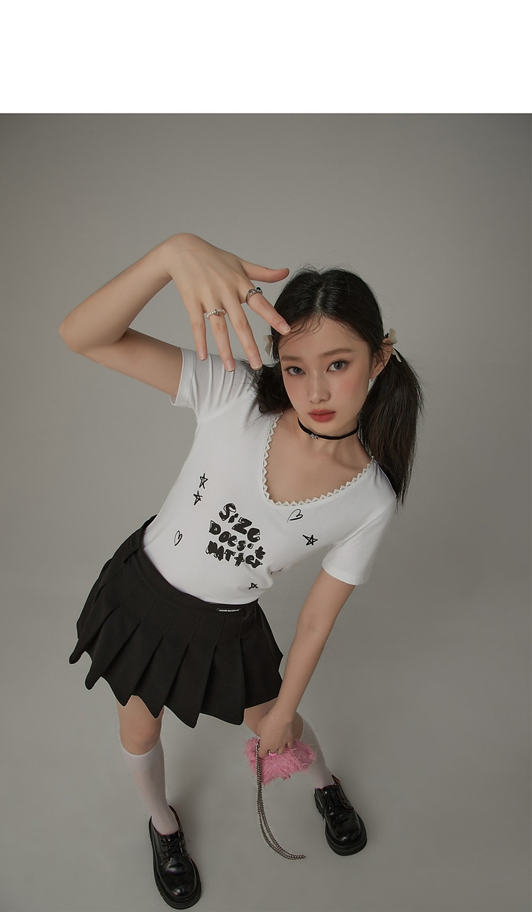 系带镂空T恤女秋甜辣修身V领字母短款上衣 432211